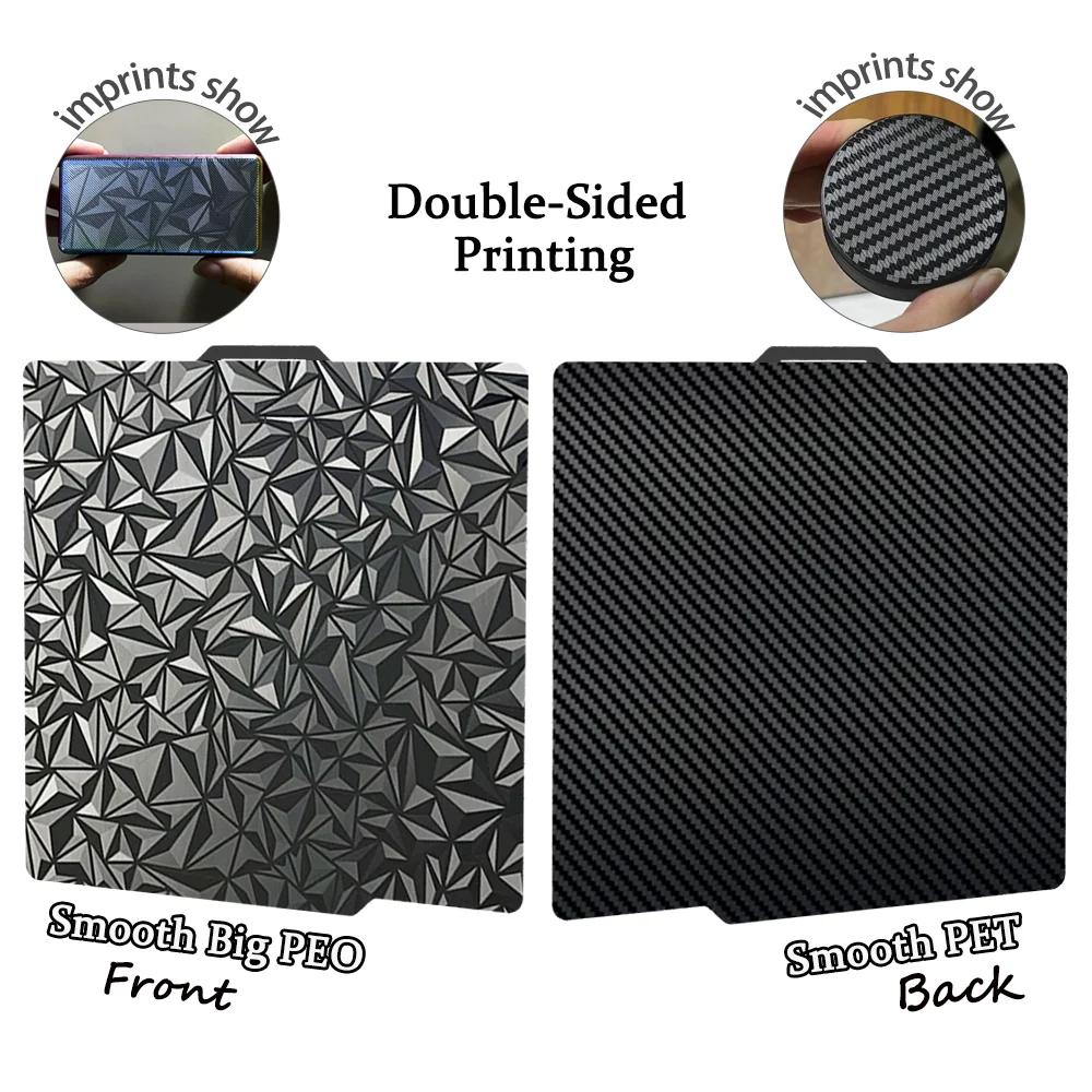 Côté PEI : PLA/PLA+/PEEK/PETG/PETG-CF/TPU/PC/ABS/Nylon etc.
