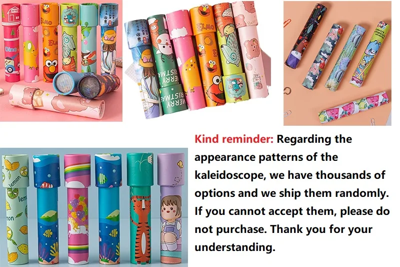 Concernant les modèles d'apparence du kaléidoscope, nous avons des milliers d'options et nous les expédions au hasard. Si vous ne pouvez pas les accepter, veuillez ne pas acheter. Merci pour votre compréhension.