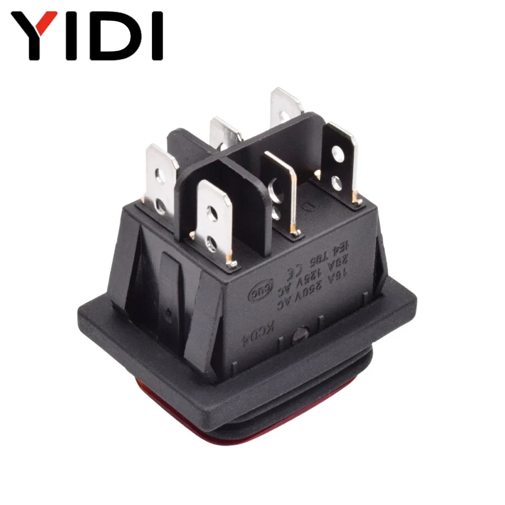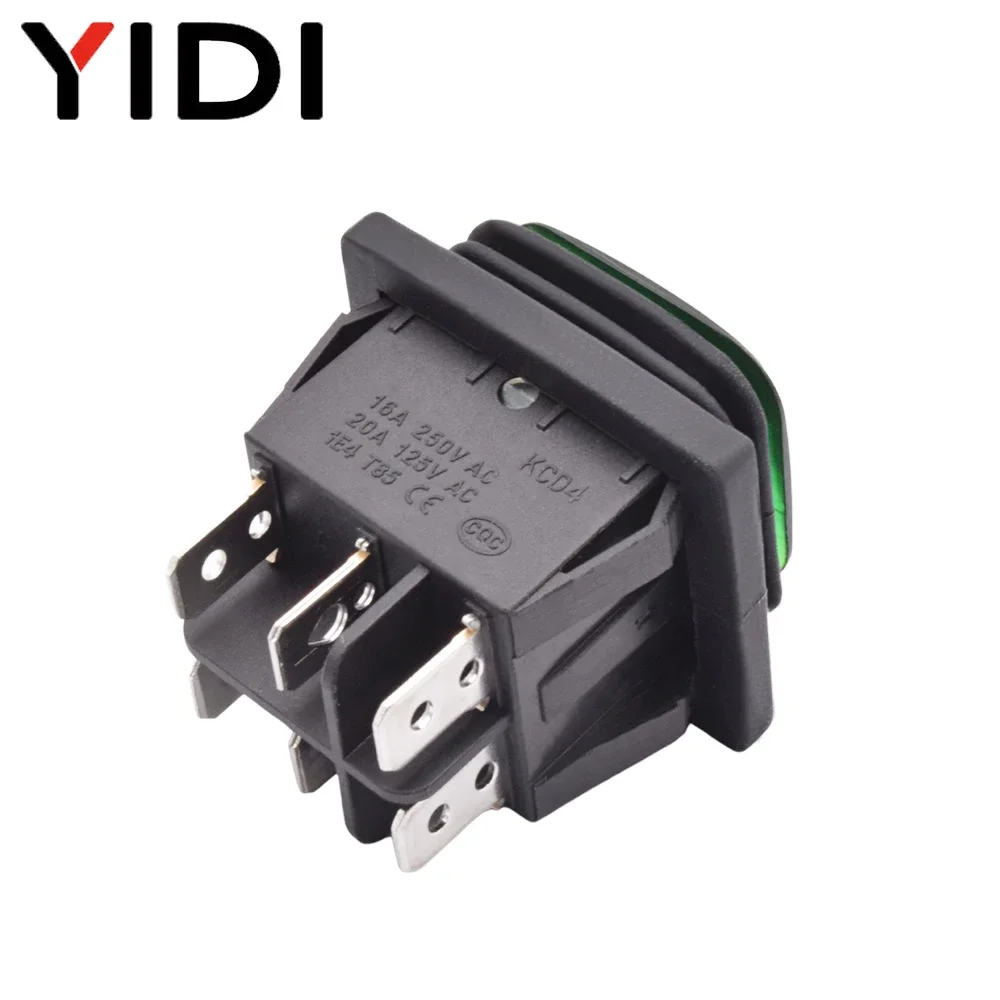 KCD4-203 KCD4 robuste 16A 250VAC 30x22mm interrupteur à bascule étanche T85 IP65 poussée 6 broches DPDT ON OFF ON 12V 220V rouge vert bleu jaune lumière LED éclairée