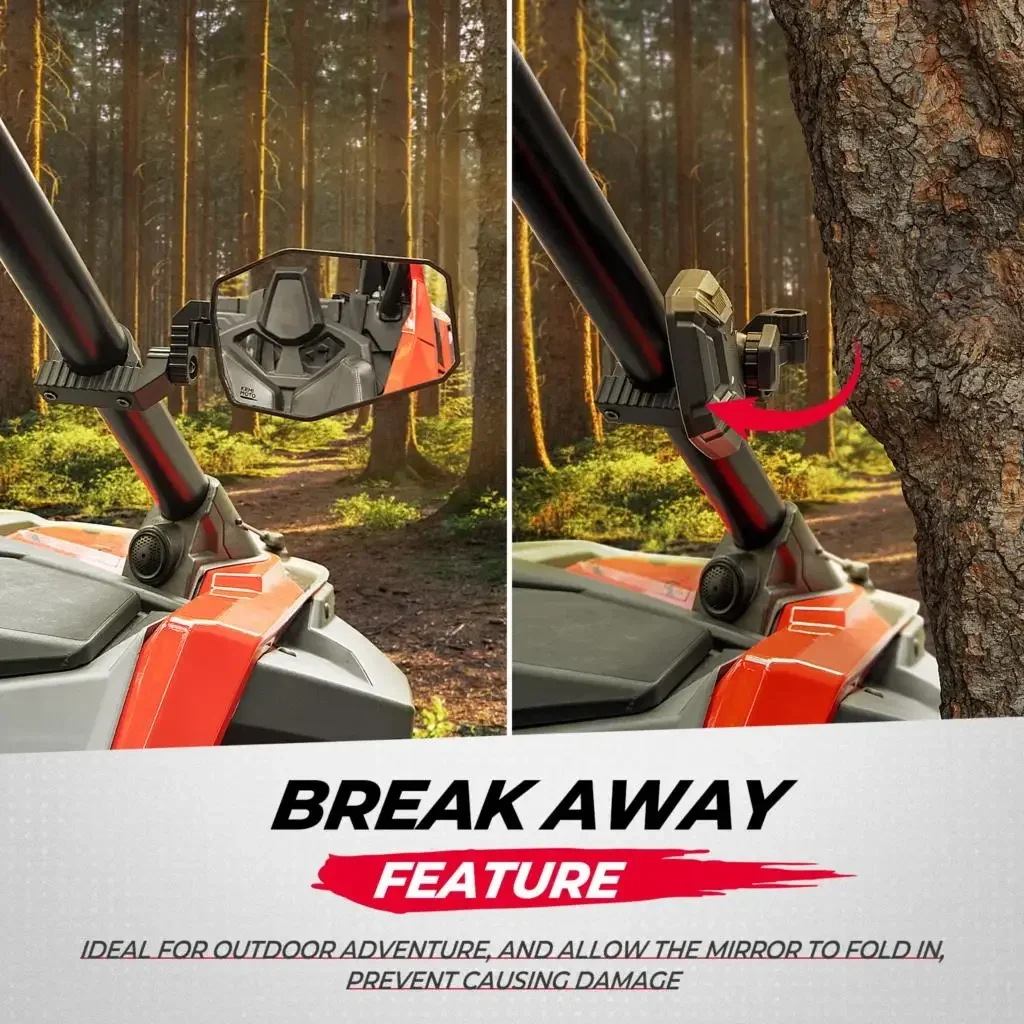 Combine un ajustement maximal et un angle de "rupture", idéal pour les aventures en plein air, permettant aux rétroviseurs UTV de se replier sans causer de dommages.