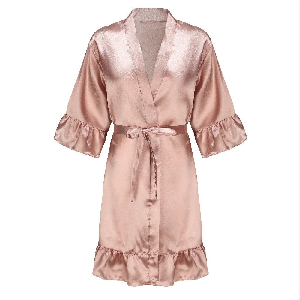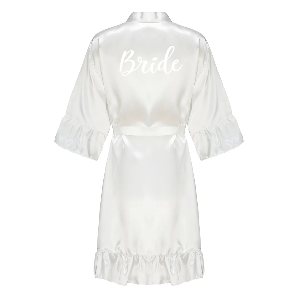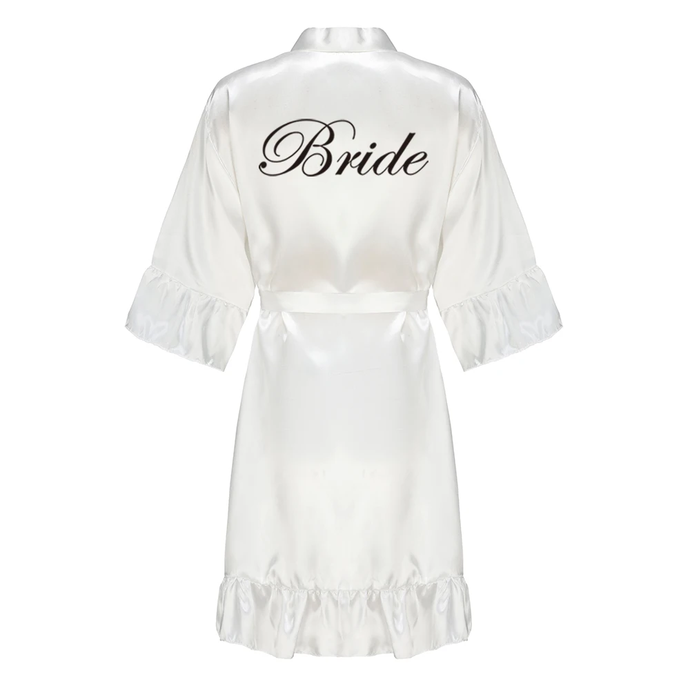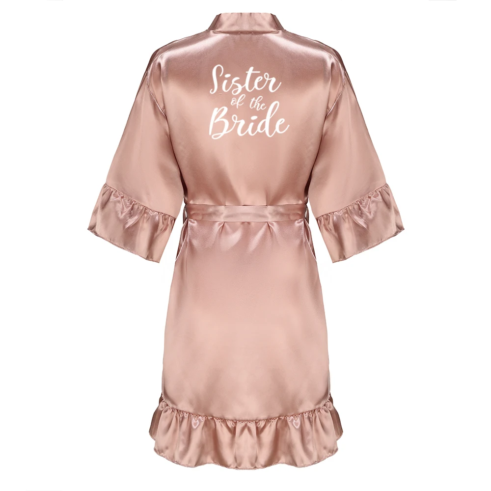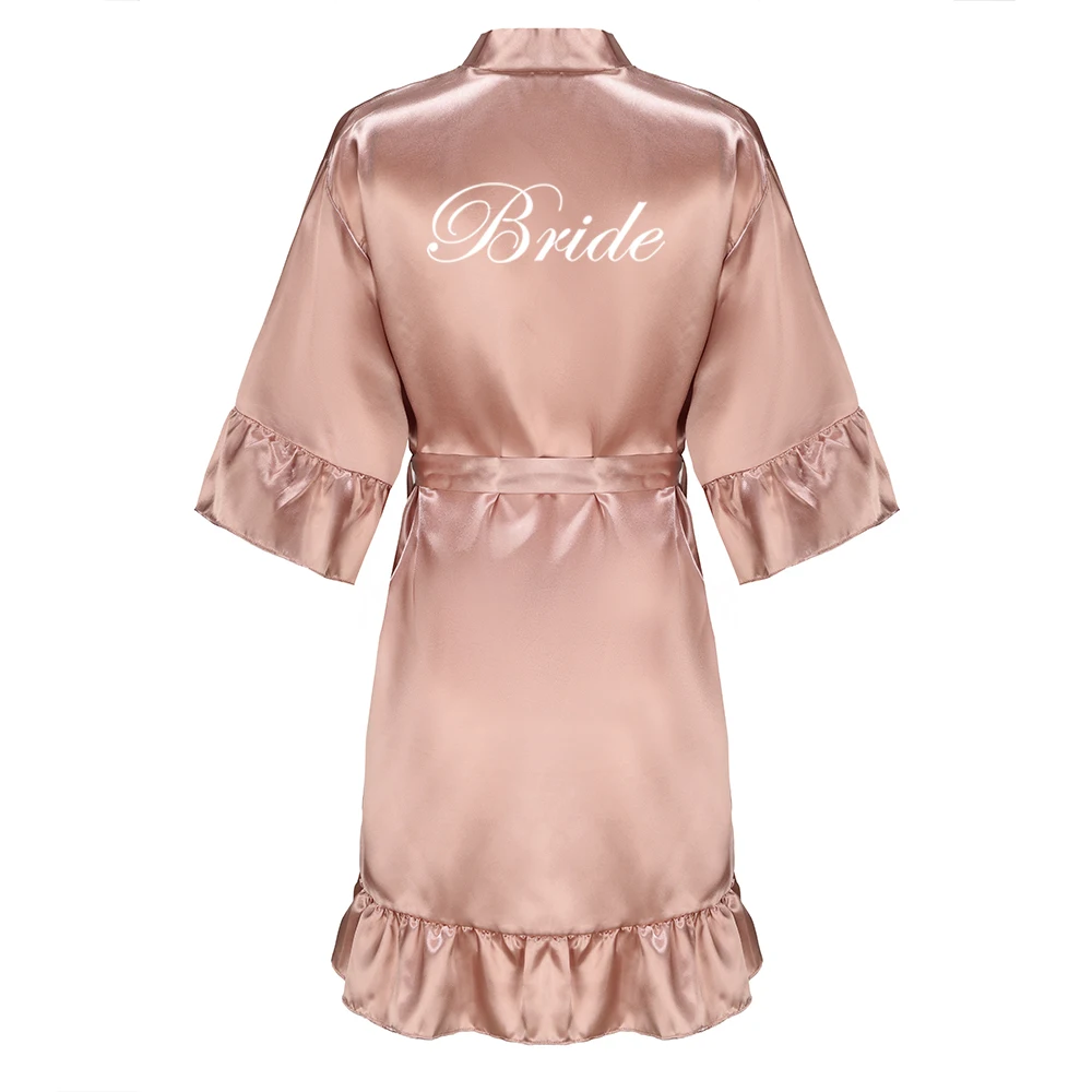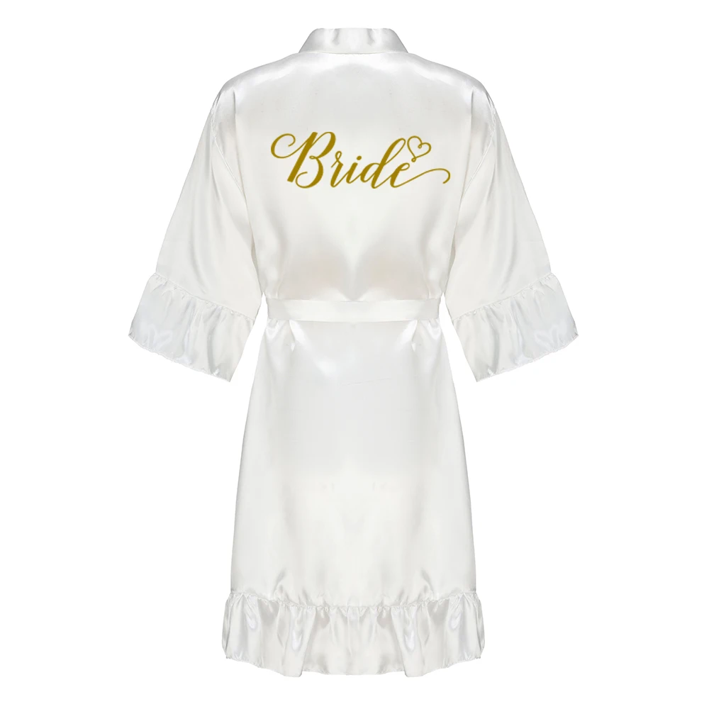 Kimono en Satin avec Lettres Blanches à Volants pour Demoiselle d'Honneur, Robe de Soirée de Mariage, Pyjama pour Mère, Peignoir Or Rose, Nouvelle Collection