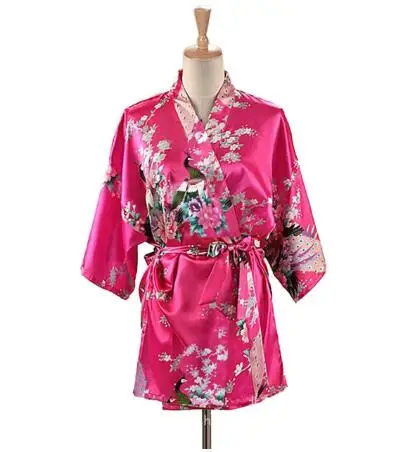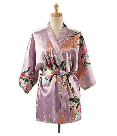 Kimono japonais imprimé paon à lacets pour femme, Yukata, en Satin de soie, Style court, vêtements de nuit, chemise de nuit pour la maison, Robe de bain, Costume