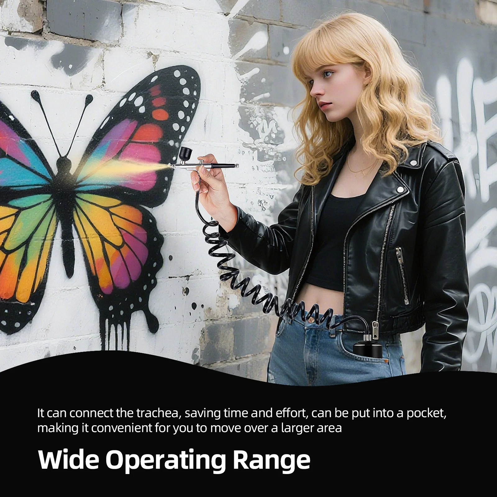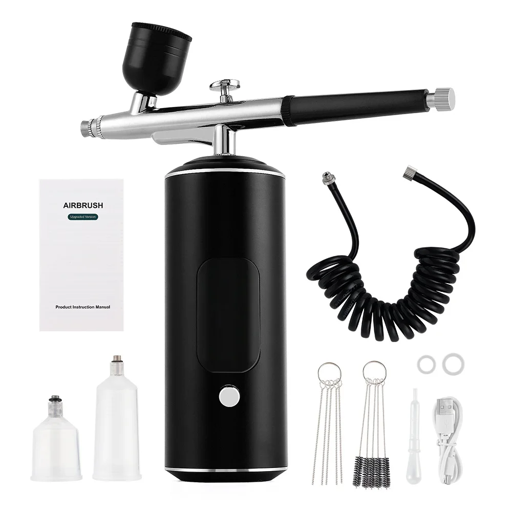 1. Kit aérographe portable.Utilisation de 0.Buse de 3 mm et régulateur de débit d'air réglable, vous pouvez visser le régulateur pour contrôler la quantité de pulvérisation, réduire le problème de blocage, peut être utilisé pour la manucure, les tatouages, la peinture artistique, la décoration de gâteaux, le maquillage, l'hydratation de beauté, le nail art, l'artisanat, les modèles., peinture corporelle, etc.