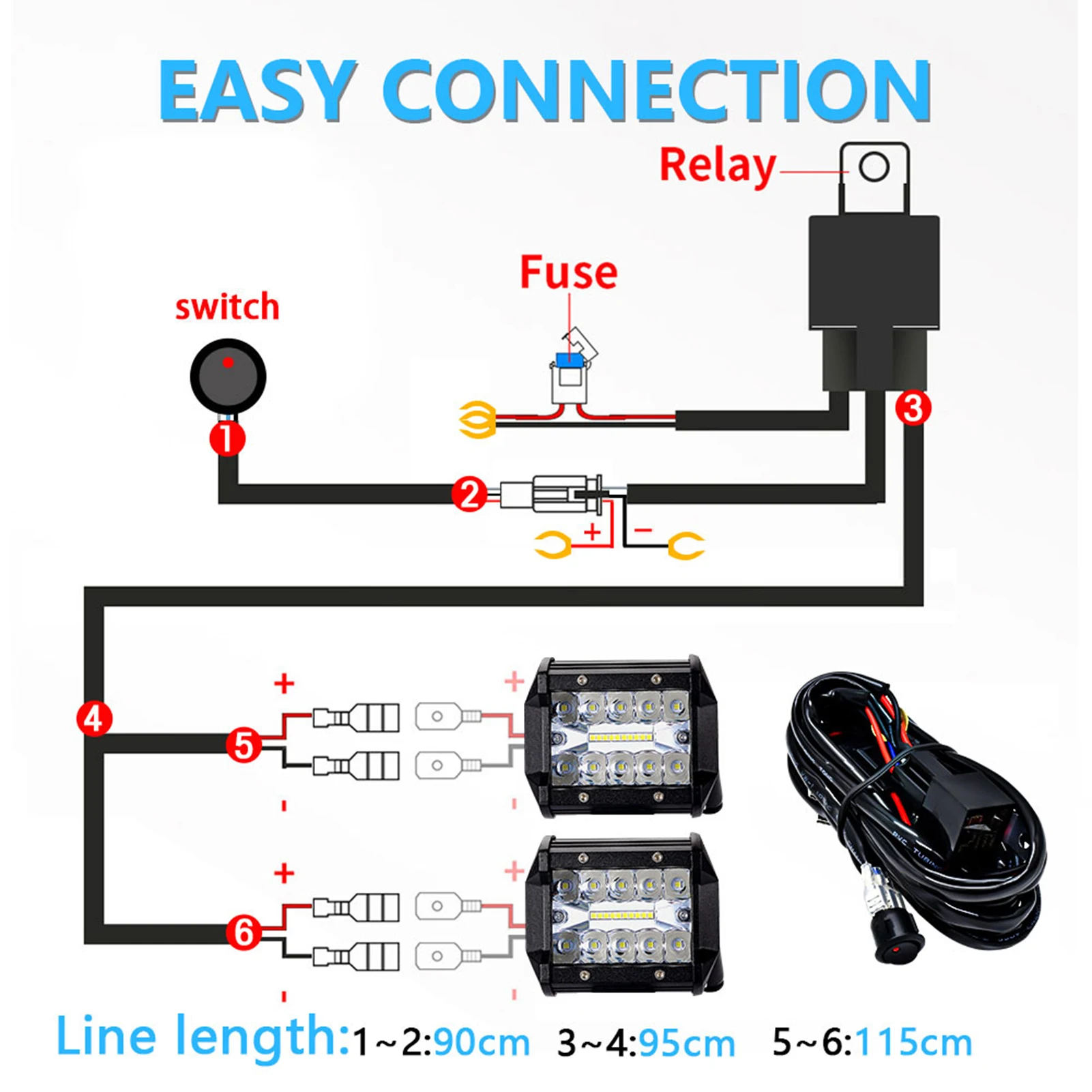 Enhanced Safety: The kit comes with a relay and a 30A fuse, offering added safety and conservation for your vehicle and light bar.