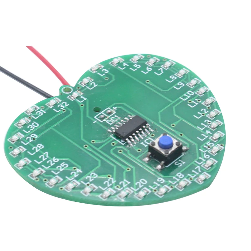 Fonction de circuit: 32 combinaisons de LED scintillent et émettent une lumière cyclique multi-états, et la LED "pointe du cœur" est en mode veille après l'extinction de S1.