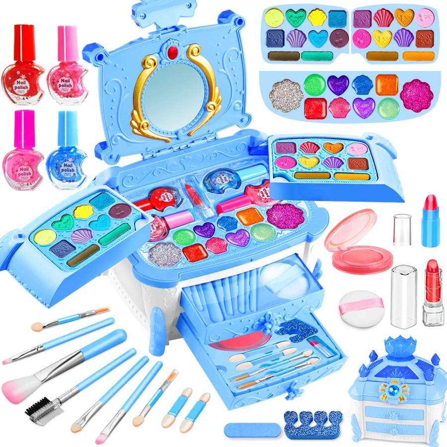 Kit de maquillage pour enfants pour filles, jeu pour enfants, véritable kit de maquillage lavable, jouets cosmétiques, cadeau pour petites filles, ensemble habillé pour tout-petits, anniversaire