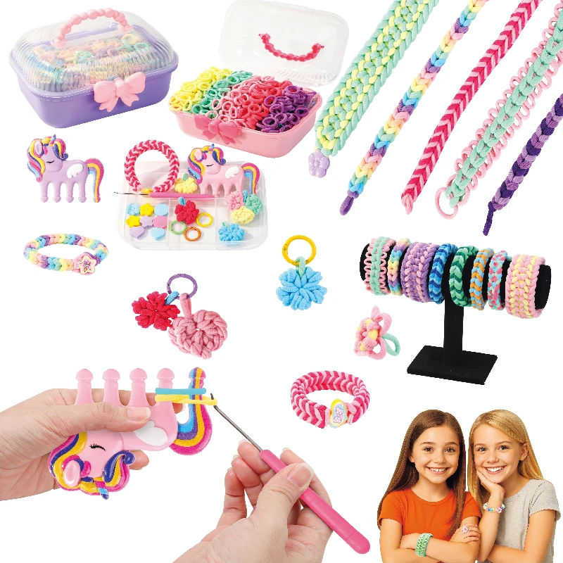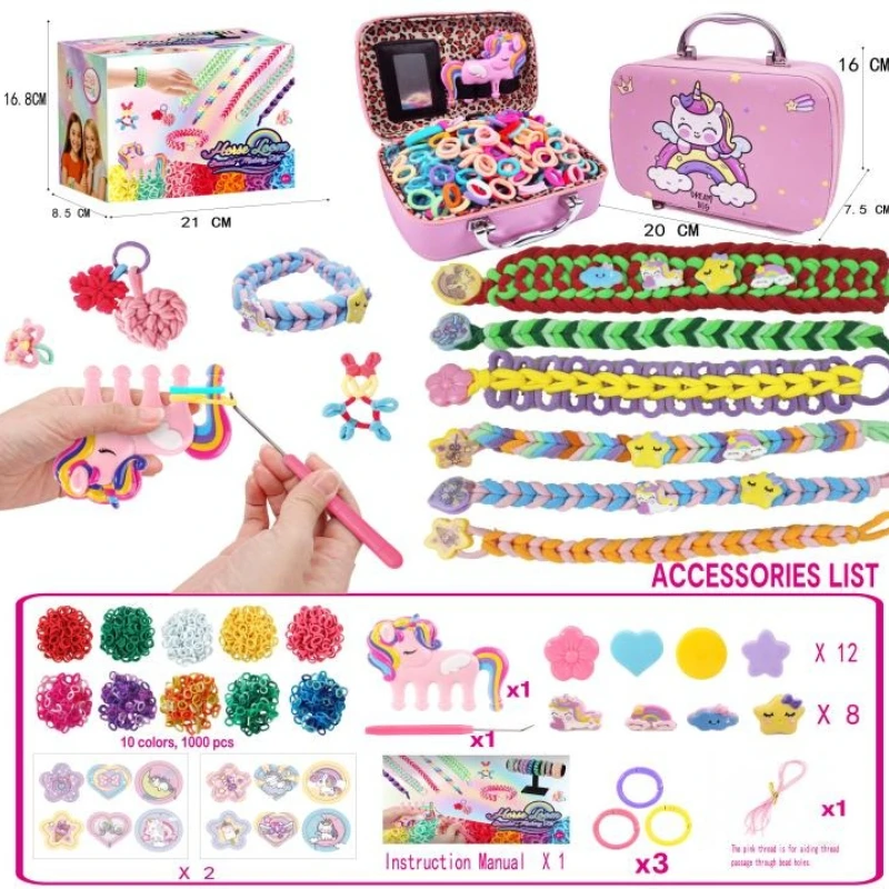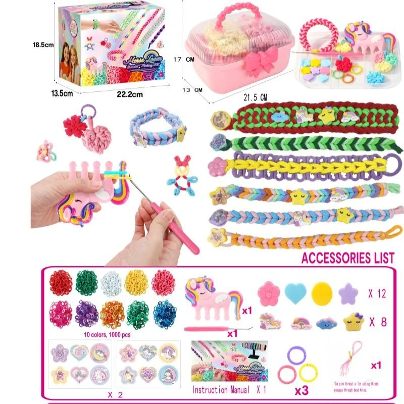 Kit de métier à tisser créatif pour enfants, bricolage de bracelets, outil de tissage à la main avec cordes élastiques, boucles, jouet artisanal fait à la main, cadeau de noël