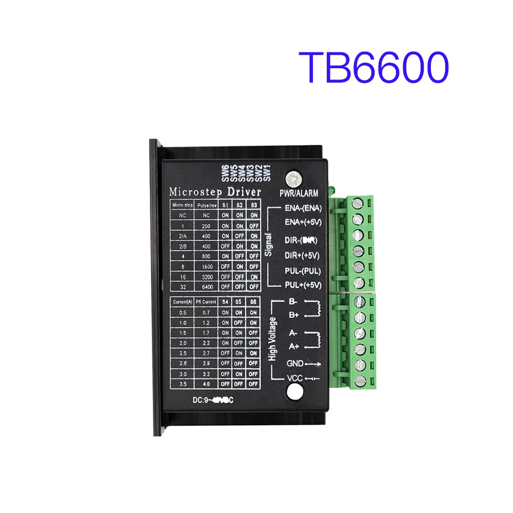 Présentation : la version améliorée du TB6600 est un pilote adapté aux moteurs pas à pas hybrides biphasés de type 57/42 avec un courant de phase inférieur à 4,0 A. Réglez 7 types de subdivisions (1/2A/2B/4/8/16/32) à l'aide d'un commutateur DIP 6 bits