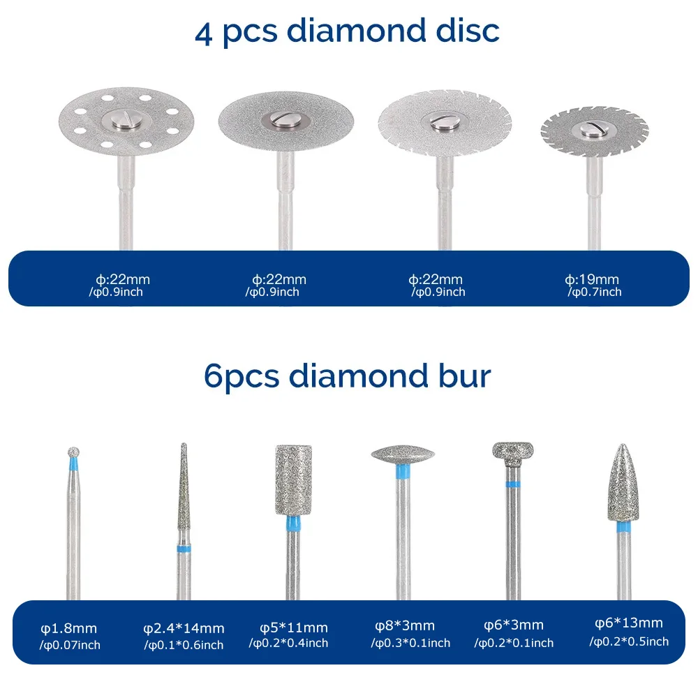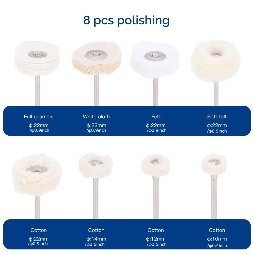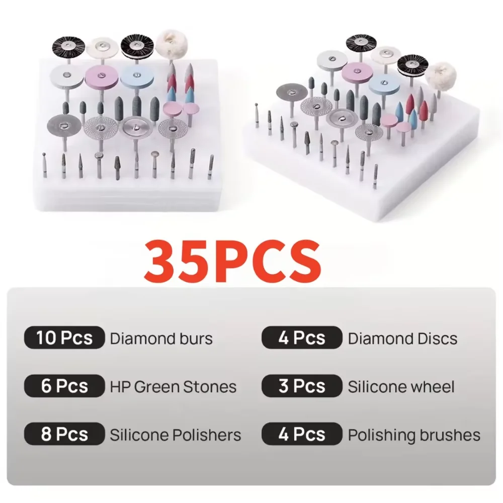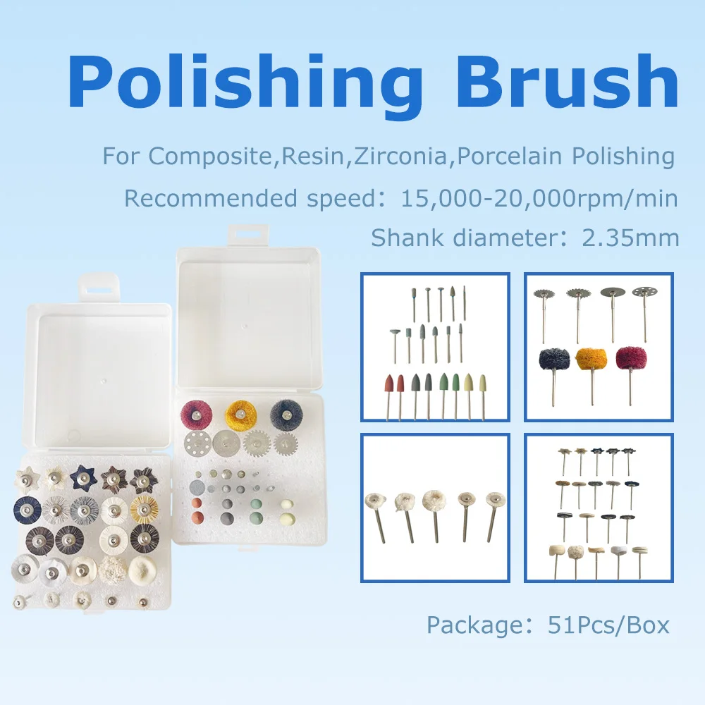 Kit de polissage HP pour laboratoire dentaire, 51/35 pièces, 2.35mm, pour le meulage de la céramique, de la porcelaine, brosses de polissage à basse vitesse, fraises diamantées, outil de dentiste