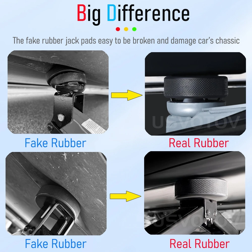 Kit de réparation de pneus Jack Pad pour Tesla modèle 3 S X Y Juniper 2026 2025 2024, accessoires de voyage, adaptateur de coussin Jack de levage en caoutchouc pour voiture Il y en a avec bote et sans bote deux types Nom du produit: pour Tesla modèle 3/Y/S/X Jack de levage Caractéristique : ✓ Protection de la batterie - Le coussin de cric élévateur usvotov peut protégez votre batterie Tesla contre les dommages lors de l'utilisation du cric (par exemple lors de la réparation ou des soins quotidiens de la voiture) ; ✓ Protéger le châssis Tesla - L'adaptateur Jack Pads offre une protection parfaite pour la voiture.Il évite les dommages/rayures au châssis et aux jupes latérales ; conomisez 2000USD Pour vous - La batterie et le châssis de la voiture sont faciles à endommager.Il faut 2000 USD de plus pour être réparé si la batterie est cassée ou déformée ; ✓ Un accessoire Tesla indispensable - Insérez le coussinet de cric dans le trou de pointe de votre cric Tesla. Alignez ensuite le jack directement en dessous ;