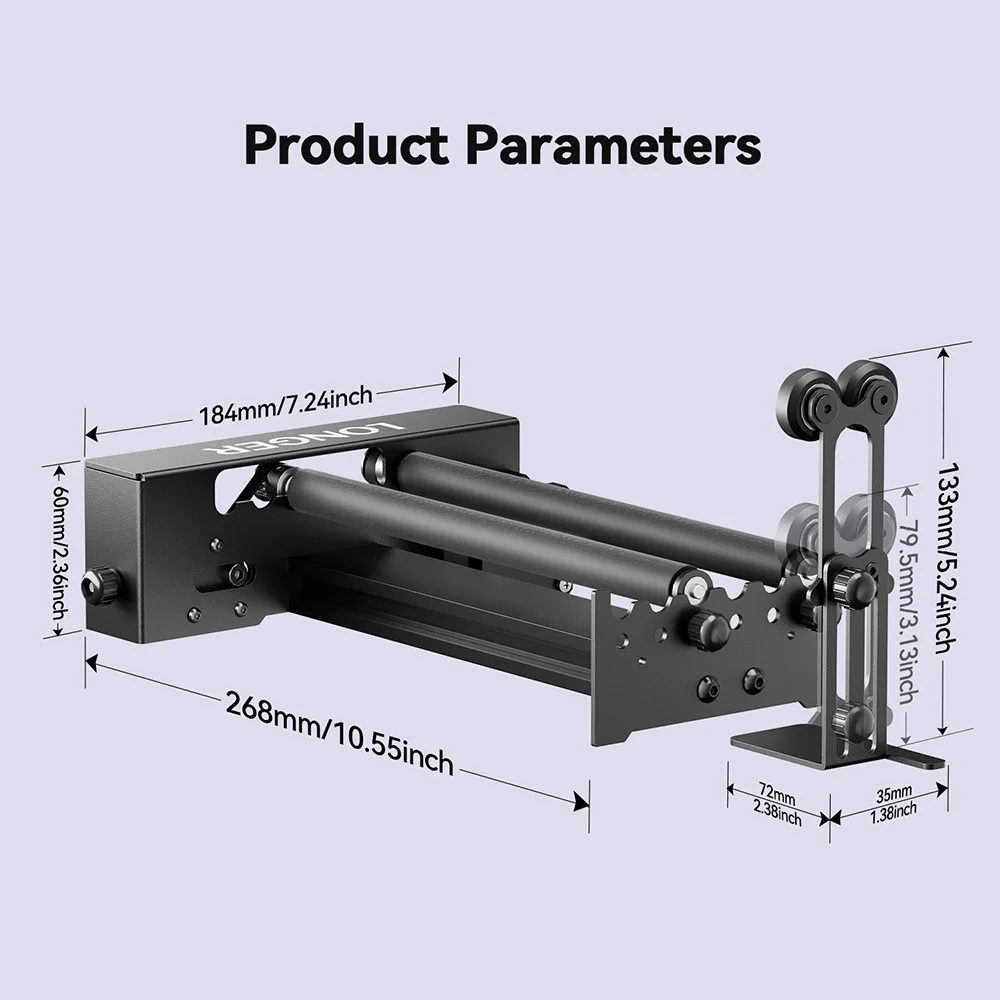 Kits de mise à niveau de rouleaux rotatifs LONGER pour graveur laser 360 ° Rotation, diamètres réglables de 6 à 300 mm pour laser RAY5 5W 10W 20W B1 Se