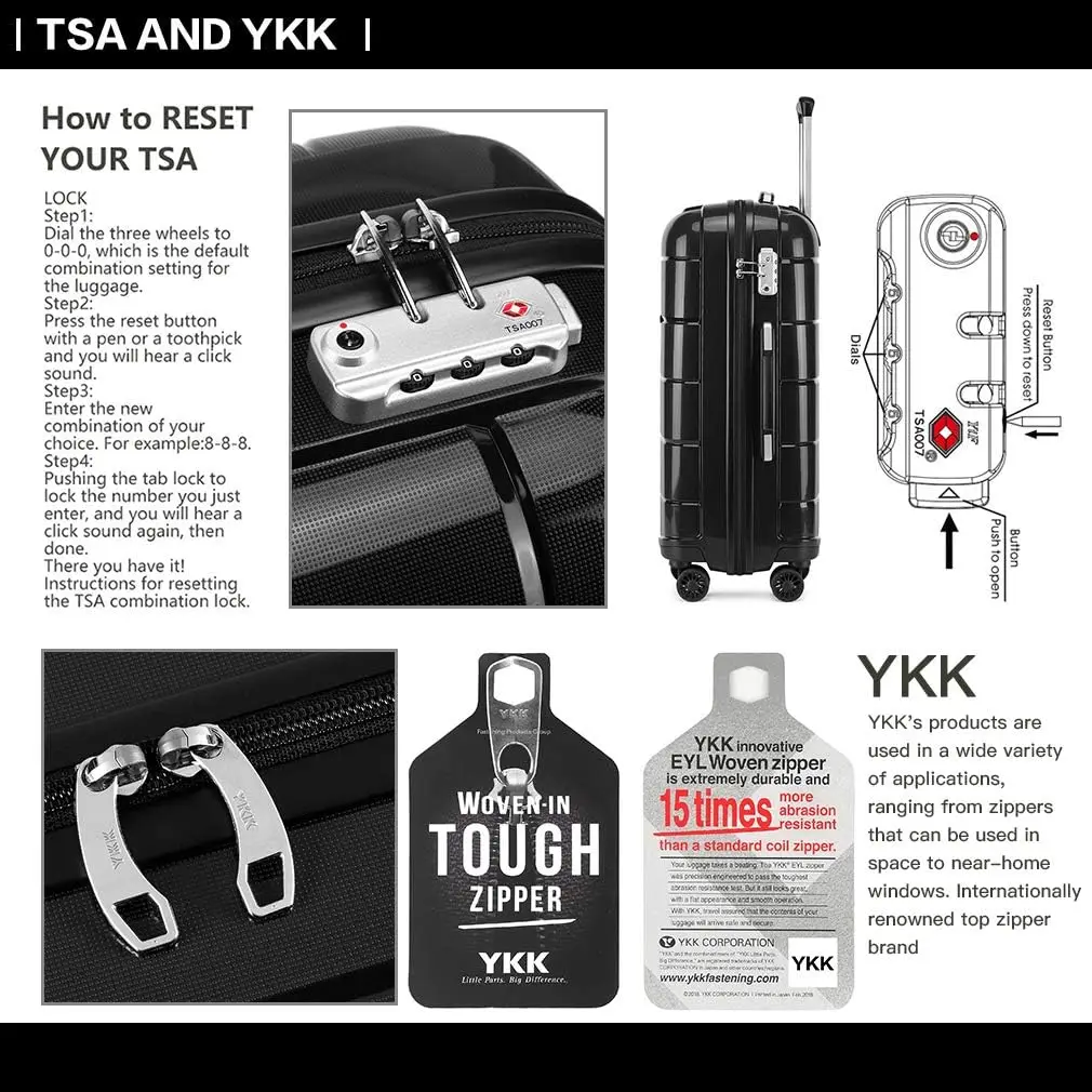 -Equipé d'une serrure TSA intégrée qui rend le boîtier accessible uniquement avec des clés spéciales, ce boîtier assure une sécurité maximale. La fermeture éclair YKK est trois fois plus solide que les fermetures éclair traditionnelles et garantit une longévité fiable.