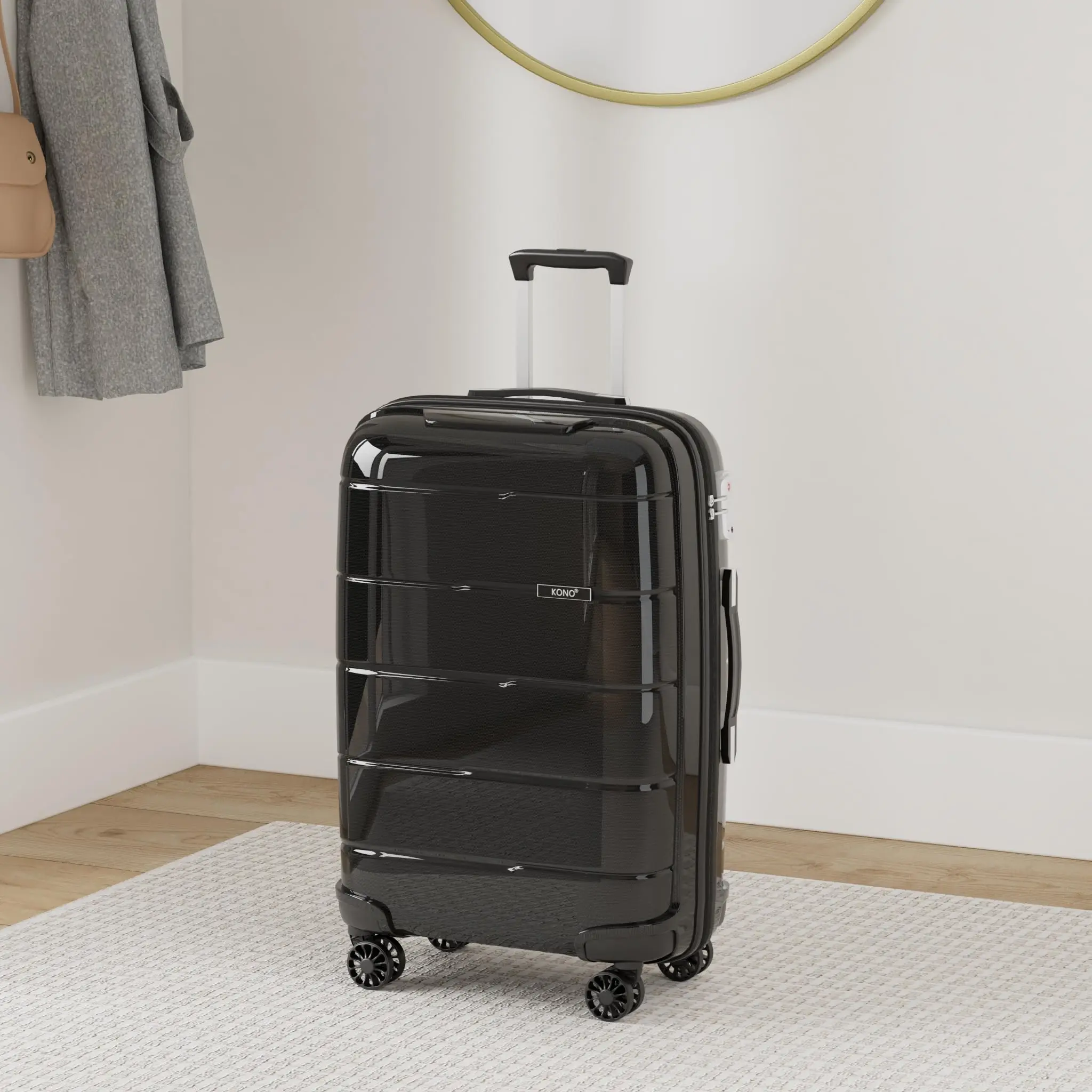 -L'étui rigide est fabriqué en polypropylène (PP) de haute qualité, un matériau connu pour sa haute résistance et sa durabilité. Comparé à d'autres plastiques tels que l'ABS et le PC, cet étui est plus léger et plus résistant aux chocs et aux rayures, ce qui le rend particulièrement robuste pour les voyages.