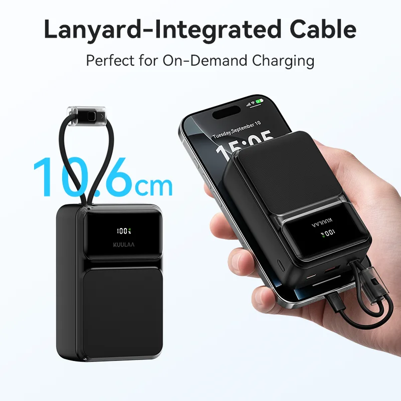 Nom du produit : Batterie Externe KUULAA 30000 mAh à Charge Rapide avec Câble Intégré