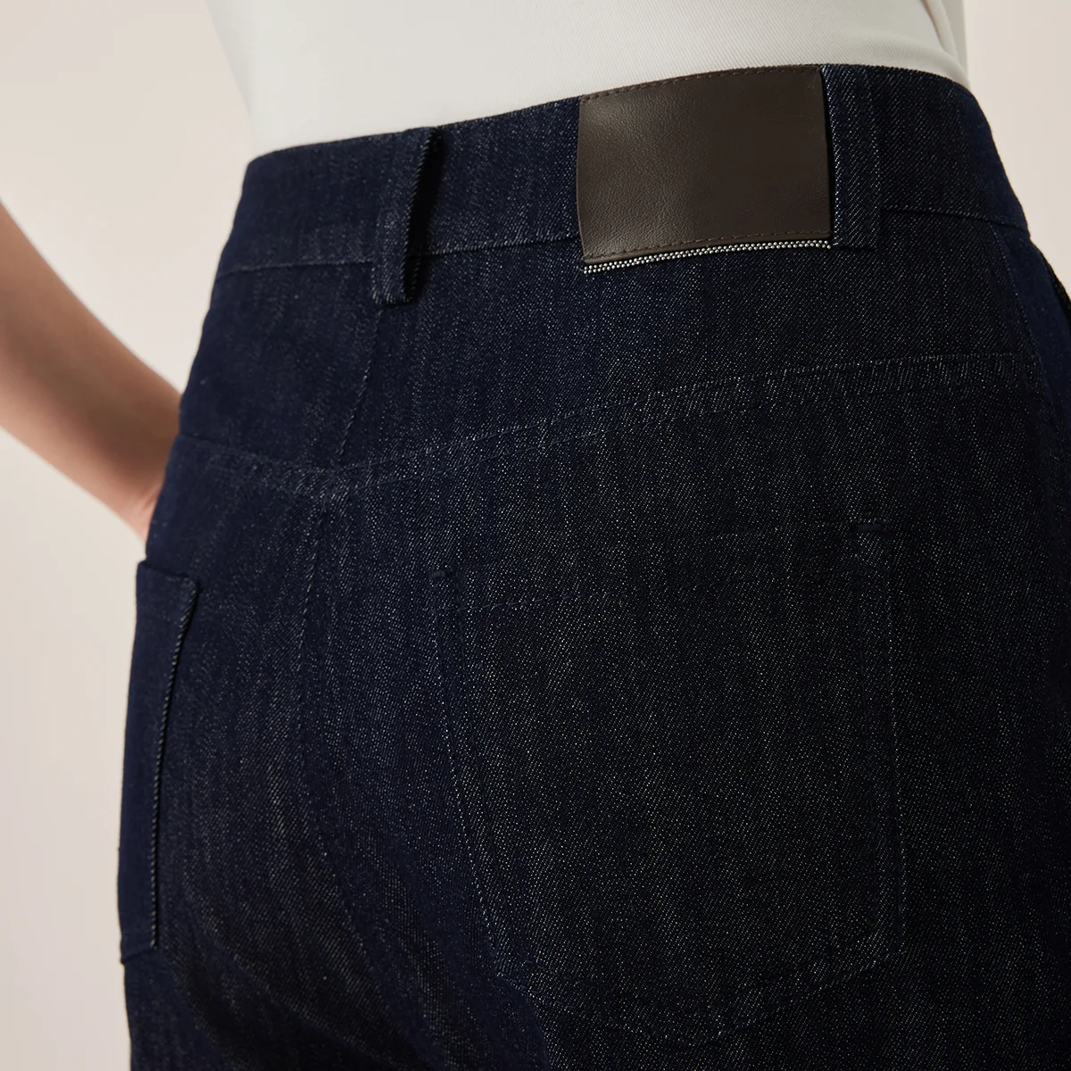 KX7523319 Pantalon taille haute en mélange de coton à jambes larges avec poches Pantalon décontracté pour femme