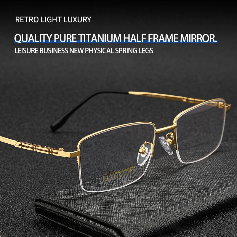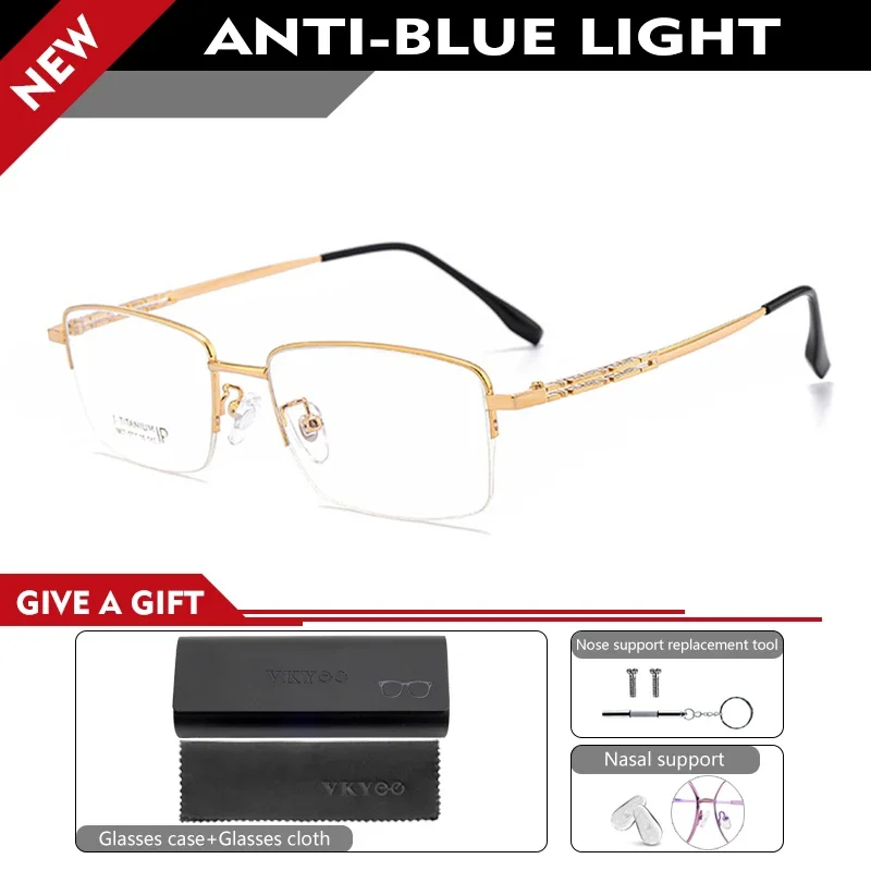 KY-Lunettes de lecture demi-jante en titane pur pour hommes d'affaires, design simple, anti-lumière bleue, lunettes pour délinquants, mode, stipulé, 1052