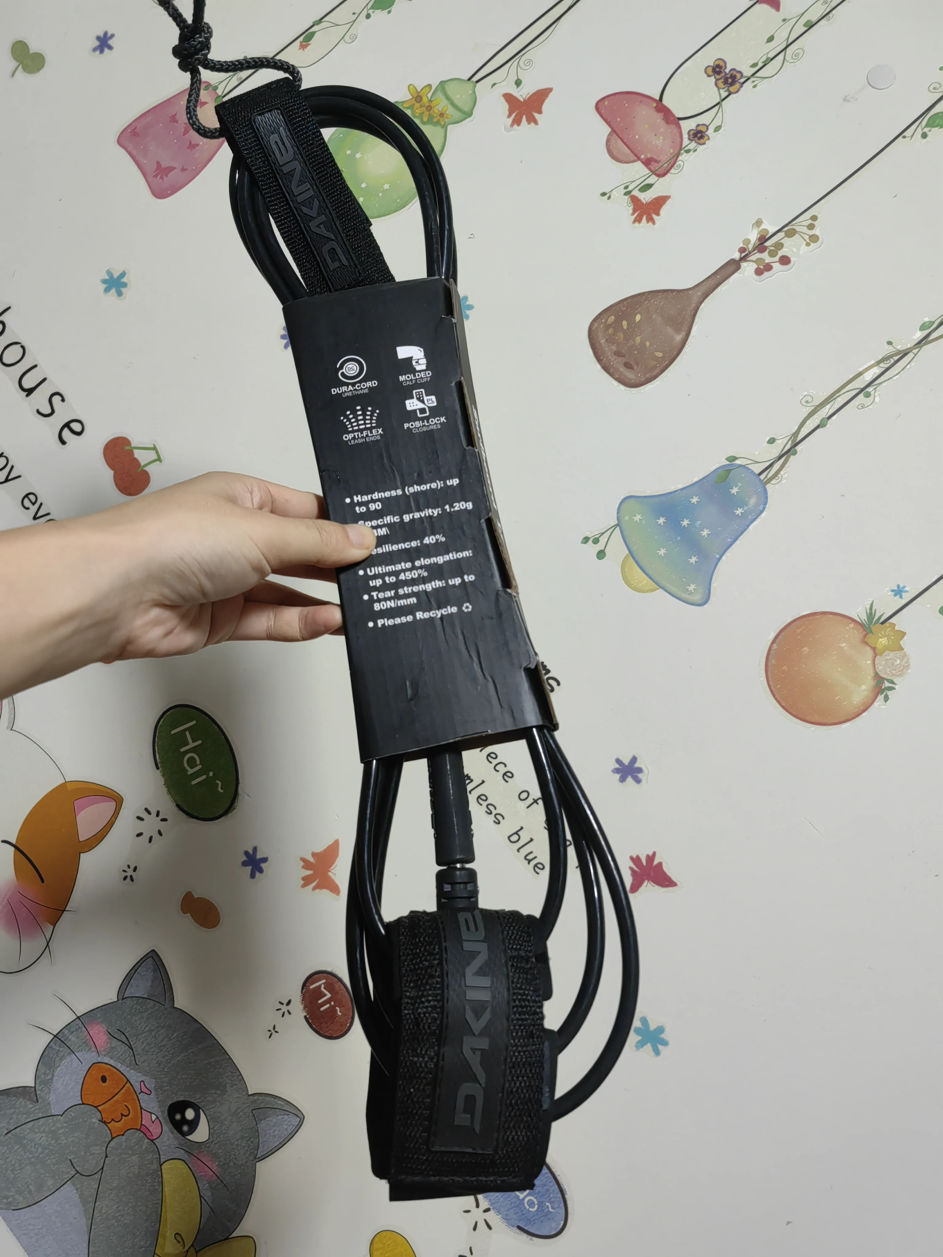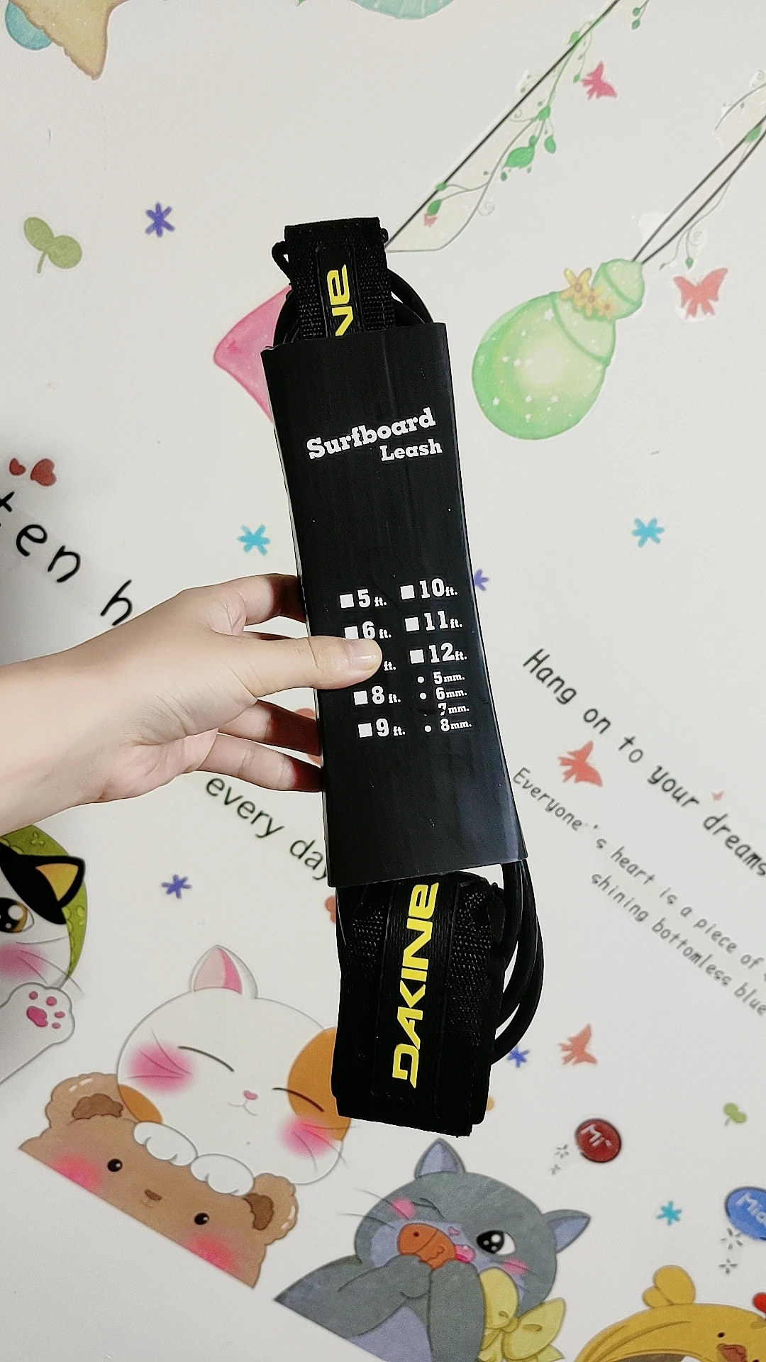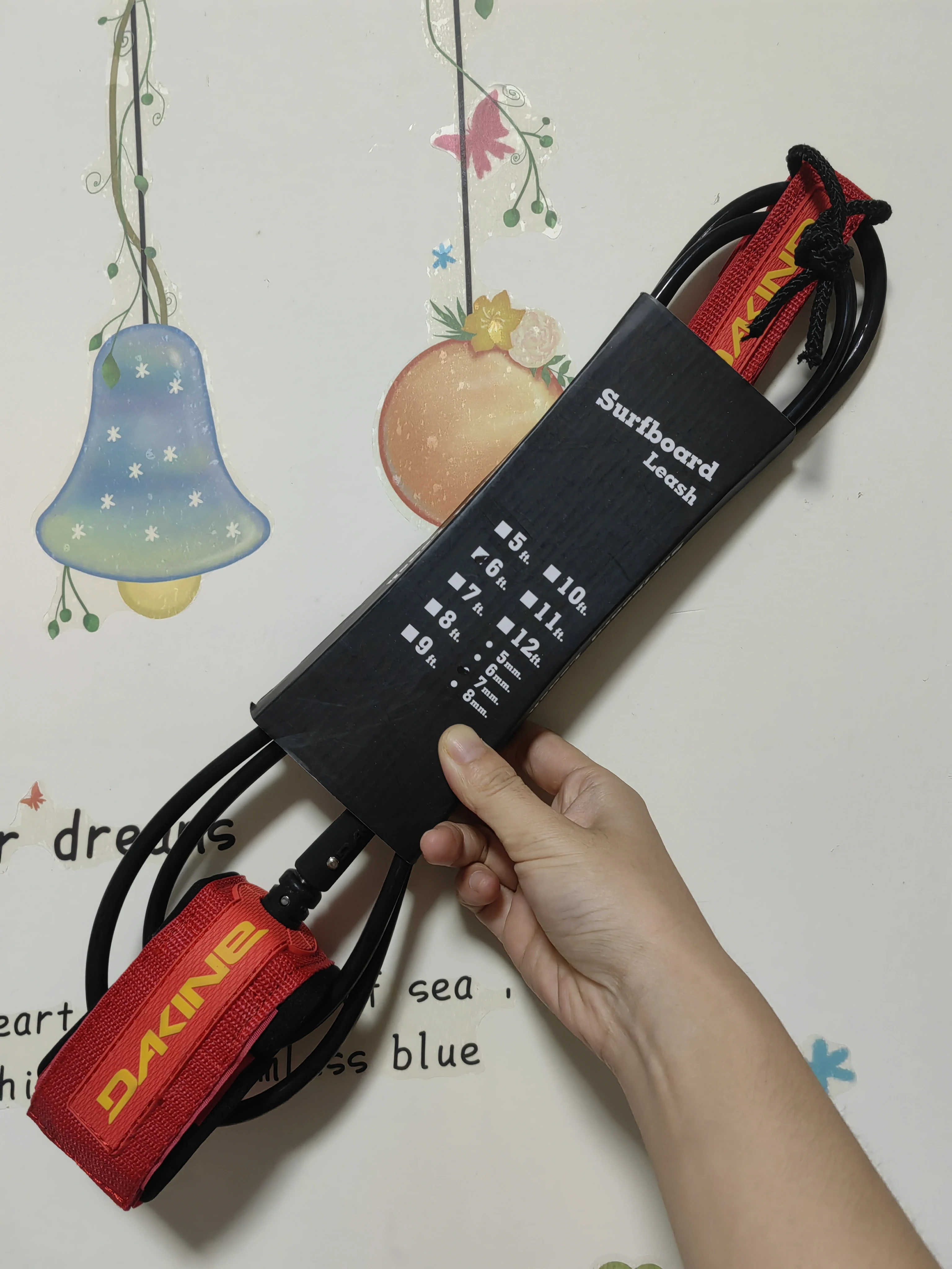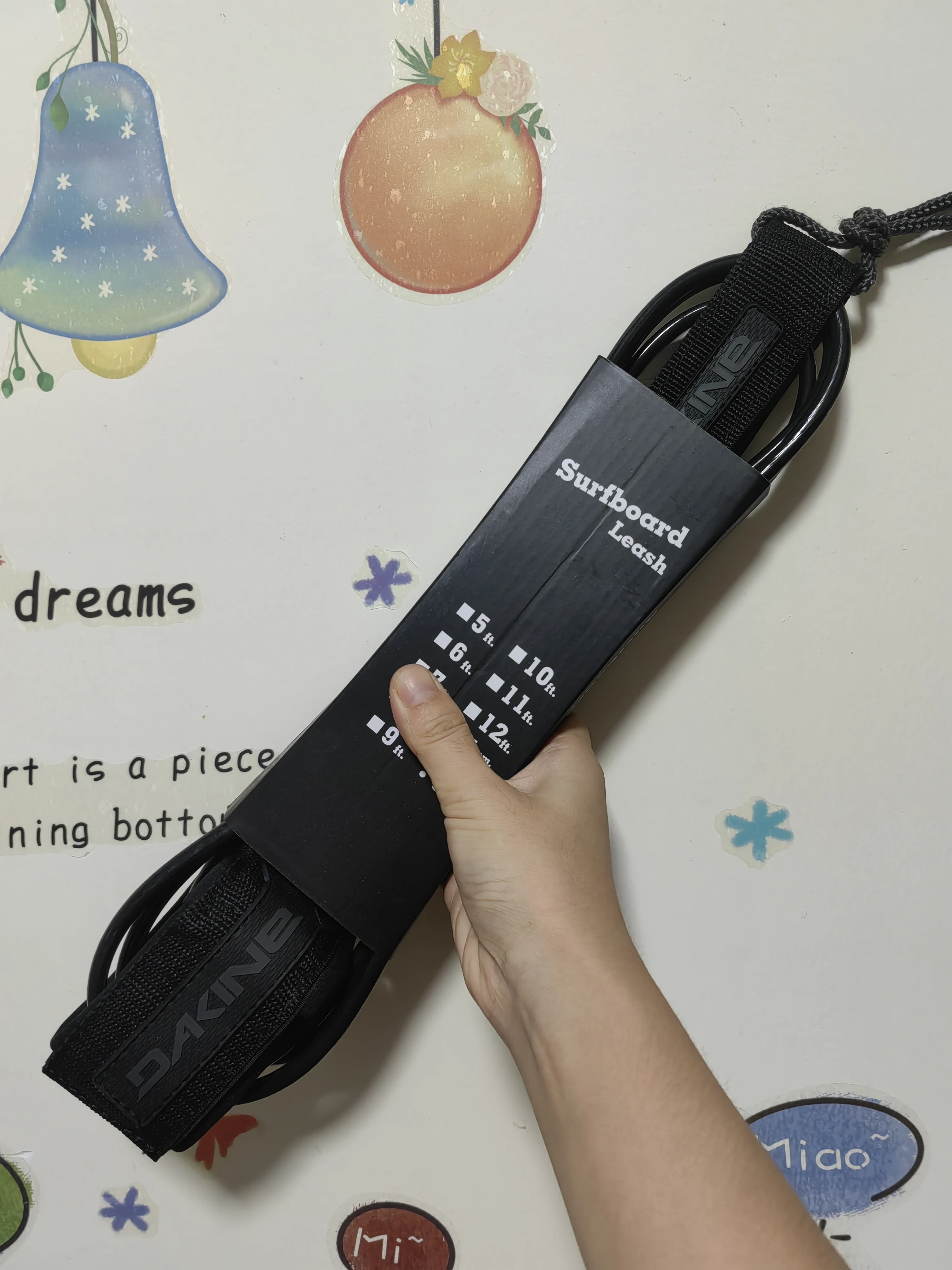 Laisse de pied de planche de surf de marque DK 6 ~ 10 pieds, corde de pied en TPU de 7mm, laisse de surf droite noire avec emballage simple