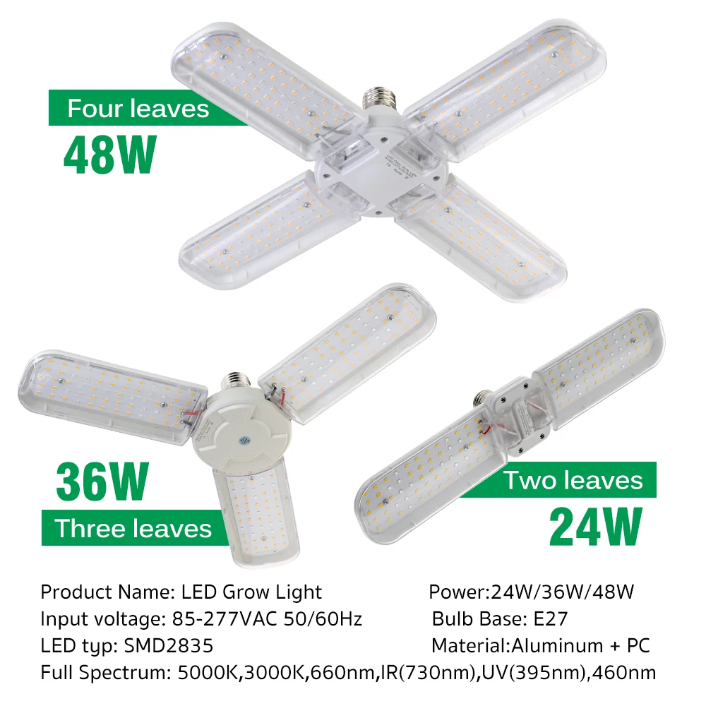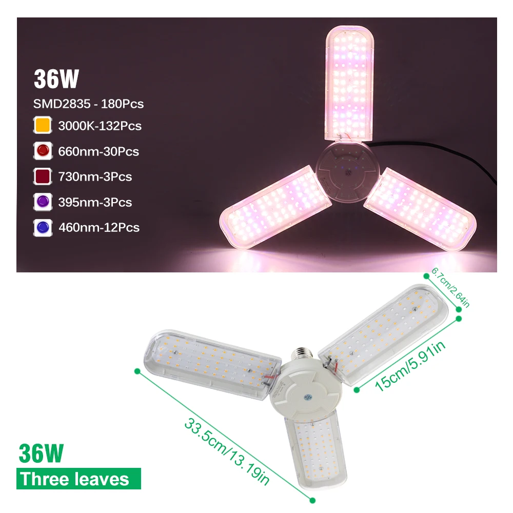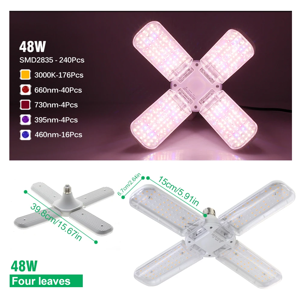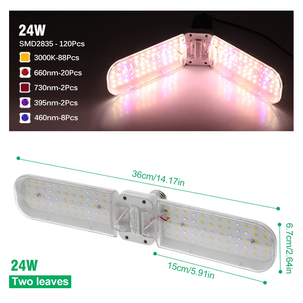 Lampe de croissance LED à spectre complet 24W/36W/48W avec support lampe pour plantes adaptée à la lampe de croissance des plantes hydroponiques en serre