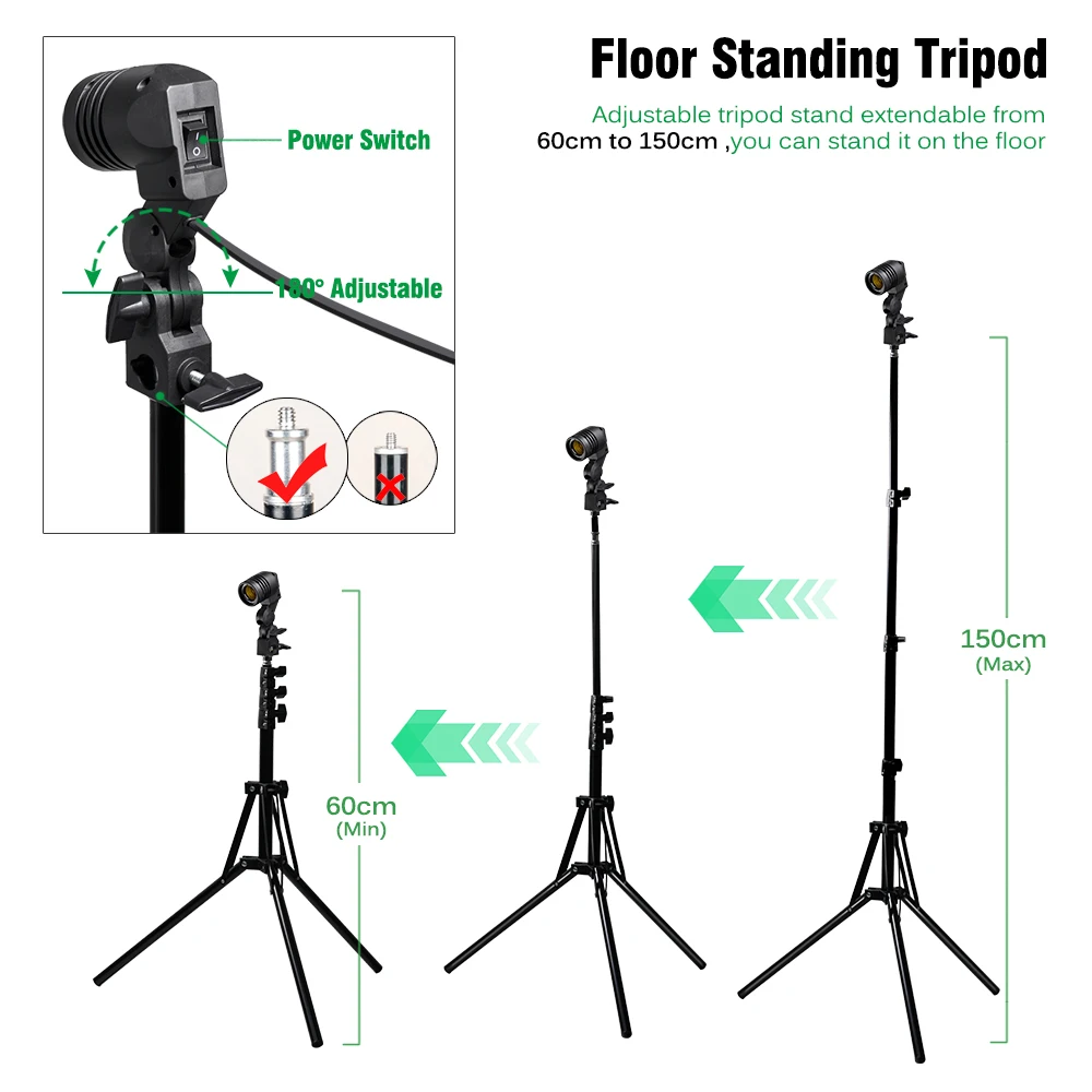 : La ligne d'interrupteur suspendu et le trépied sont livrés avec des fiches européennes.