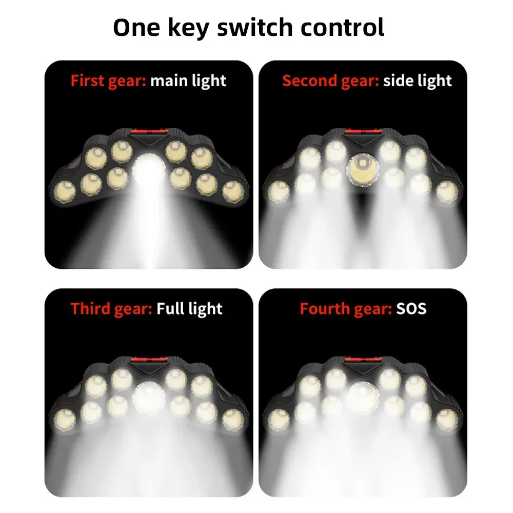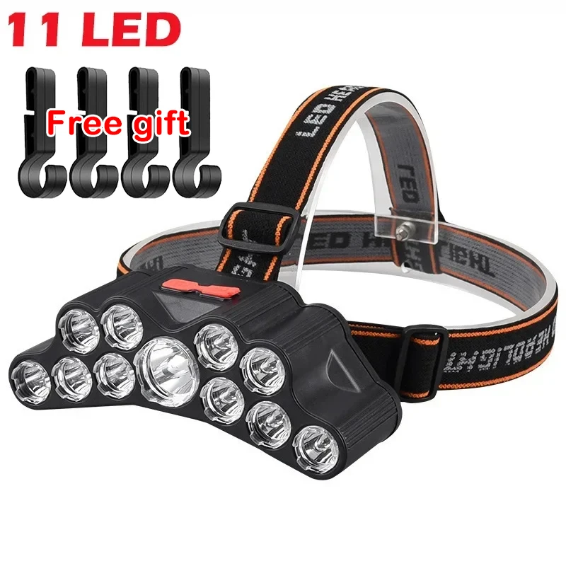 Lampe de poche aste USB pour la pêche en plein air, lampe de bain 11LED, lampe de sauna injuste, batterie 18650 intégrée