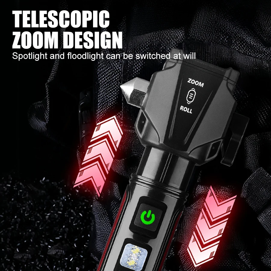 Présentation de la lampe de poche zoom multifonctionnelle – votre compagnon ultime pour les aventures en plein air, les urgences et une utilisation quotidienne.Conçue dans un souci de polyvalence et de durabilité, cette lampe de poche compacte mais puissante combine une technologie d'éclairage avancée avec des outils de survie pratiques.Que vous soyez en camping, en randonnée, en travaillant ou dans une situation inattendue, cette lampe de poche est conçue pour fonctionner.