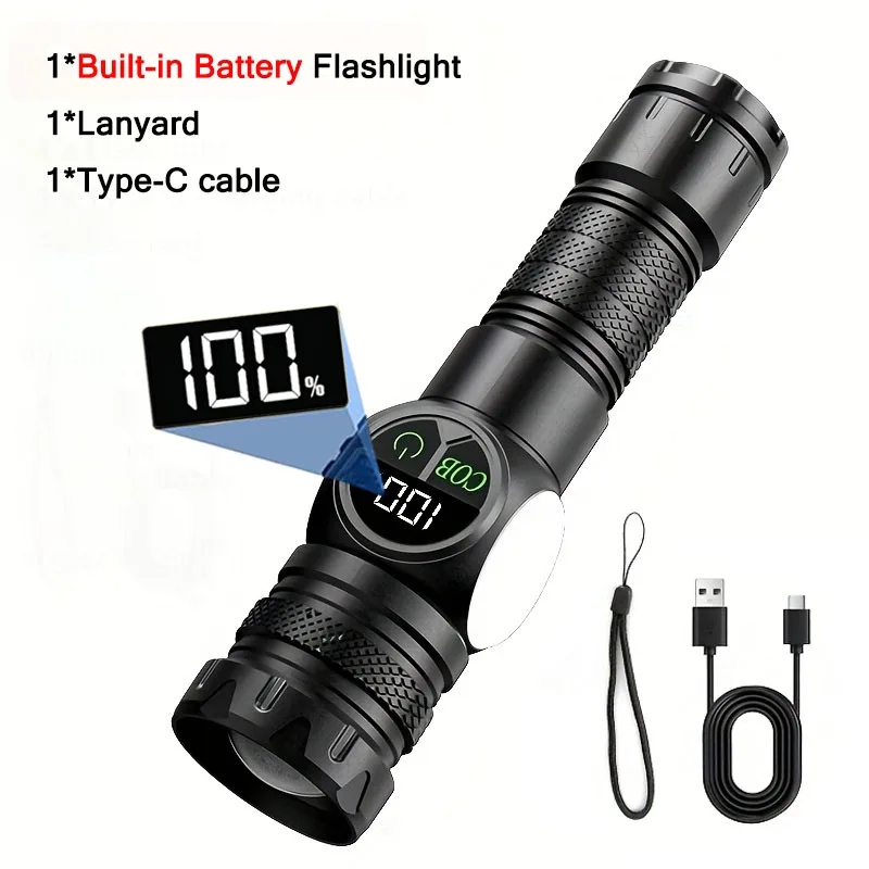 Lampe de poche LED très brillante, Rechargeable par USB, torche tactique longue portée, étanche, lanterne d'extérieur pour Camping et pêche