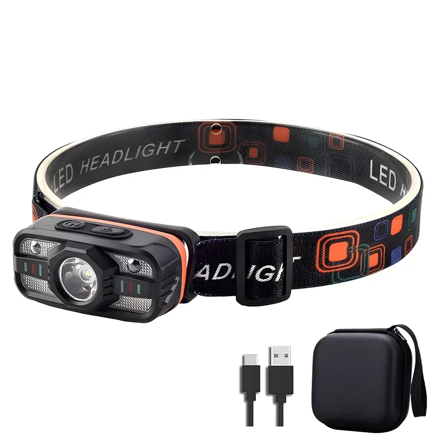 Lampe frontale LED Rechargeable par USB, Portable, avec batterie intégrée, 6 Modes d'éclairage, torche frontale de pêche, lanterne de Camping en plein air