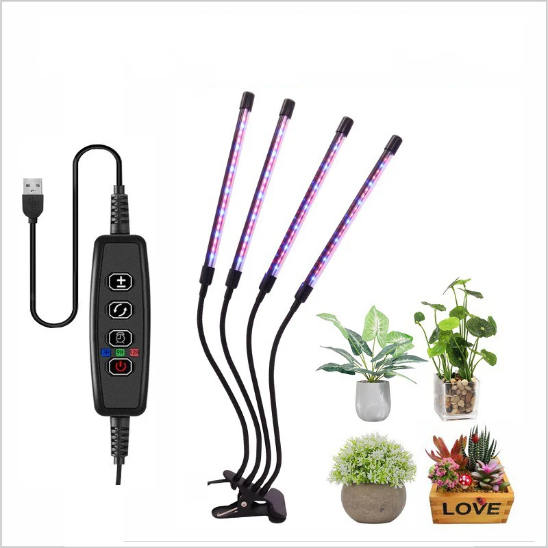 Phytolampe de lumière de croissance USB à tête 1/2/3/4 pour plantes avec contrôle, spectre complet, lumières Fitolamp, pince de semis de fleurs pour la maison, lampe Phyto