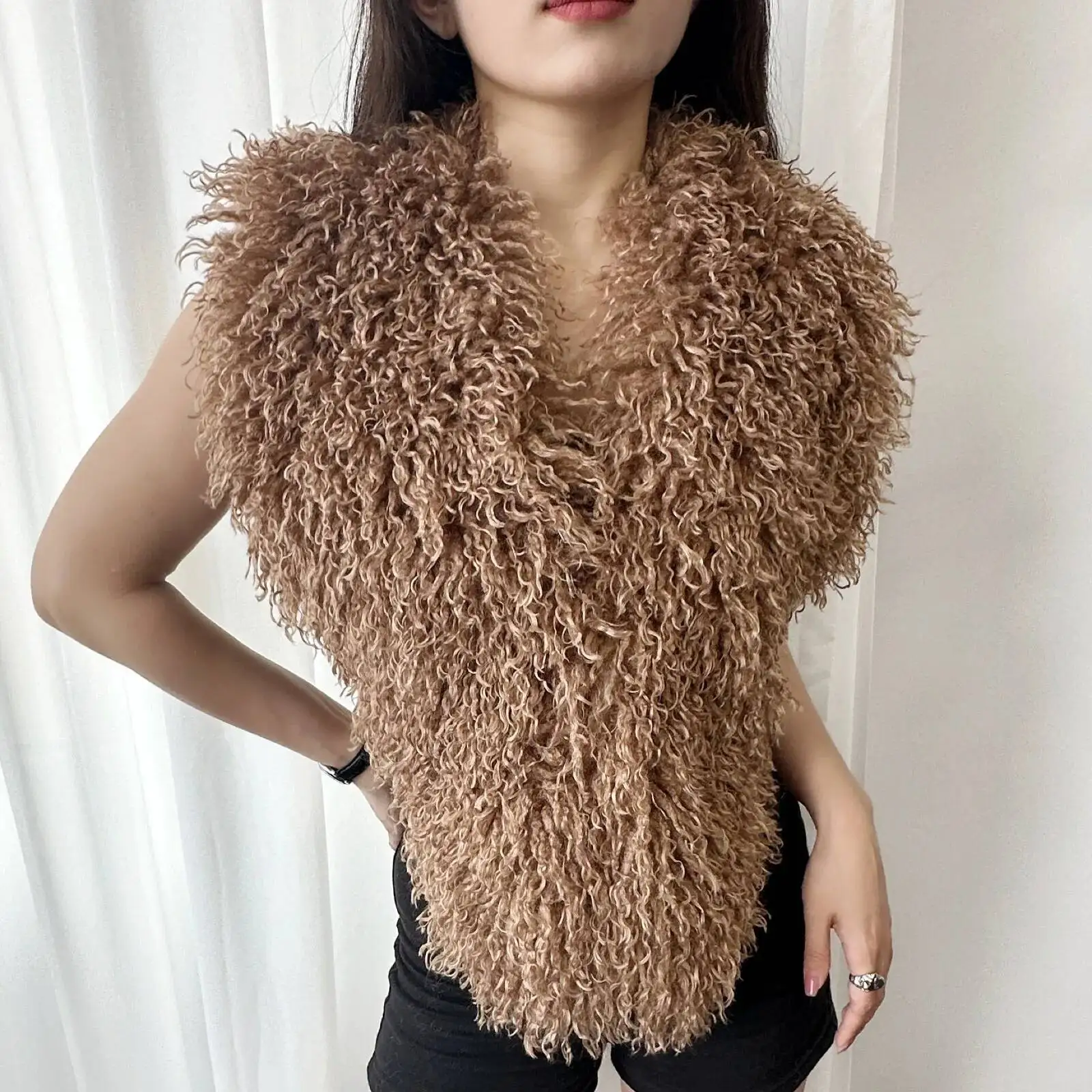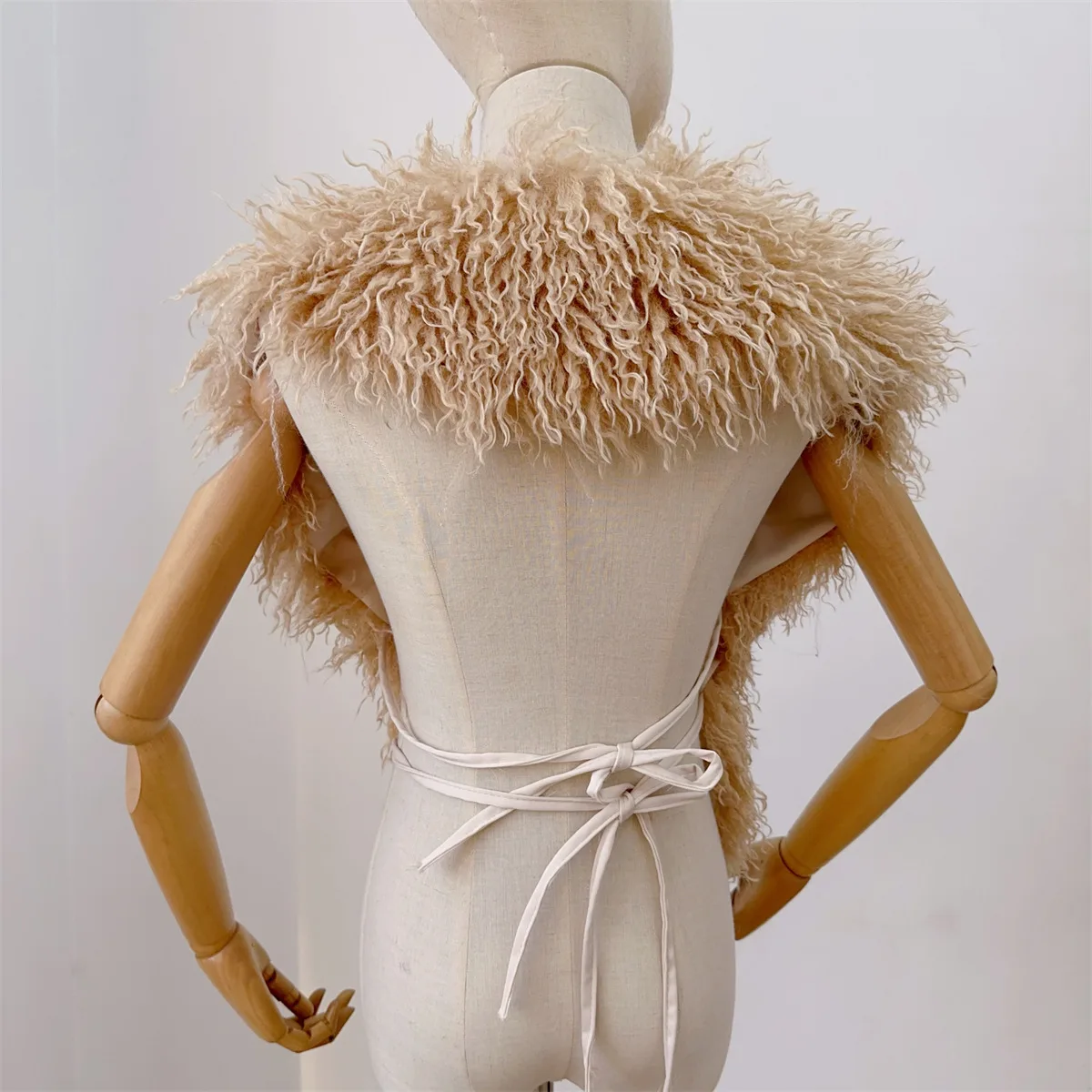 LANMREM 2025 nouveau gilet en fausse fourrure pour les femmes Imitation peau de mouton Sexy dos nu haut à licou automne hiver Chic vêtements 2DB4916