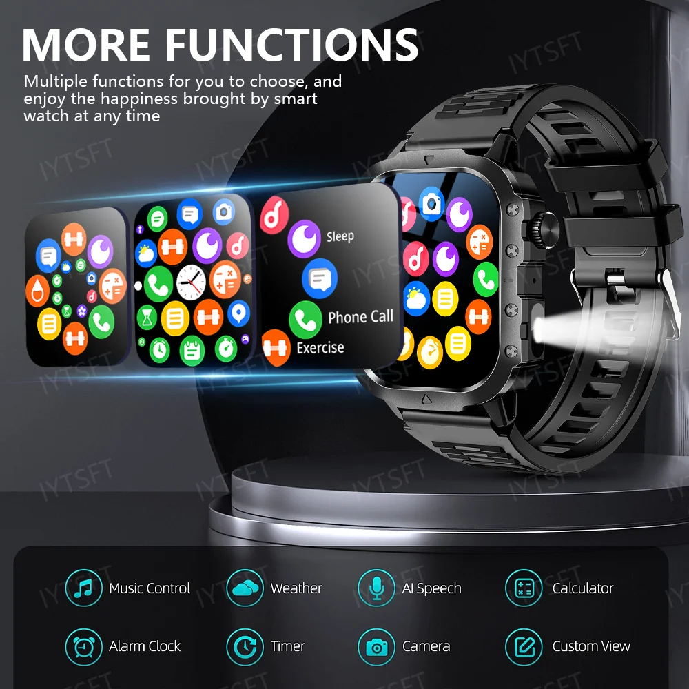 1.Écran haute résolution : la montre intelligente dispose d'un écran haute résolution de 2,01 pouces qui affiche toutes les notifications et données de condition physique de manière claire et vive.