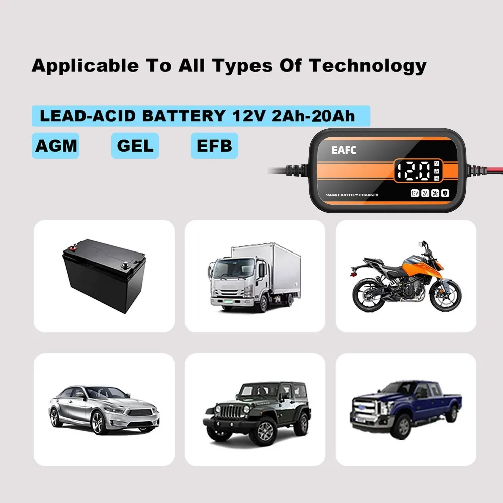 Convient aux batteries au plomb 12 V 2 Ah-20 Ah, y compris les voitures, les SUV, les motos, les jeeps, etc.