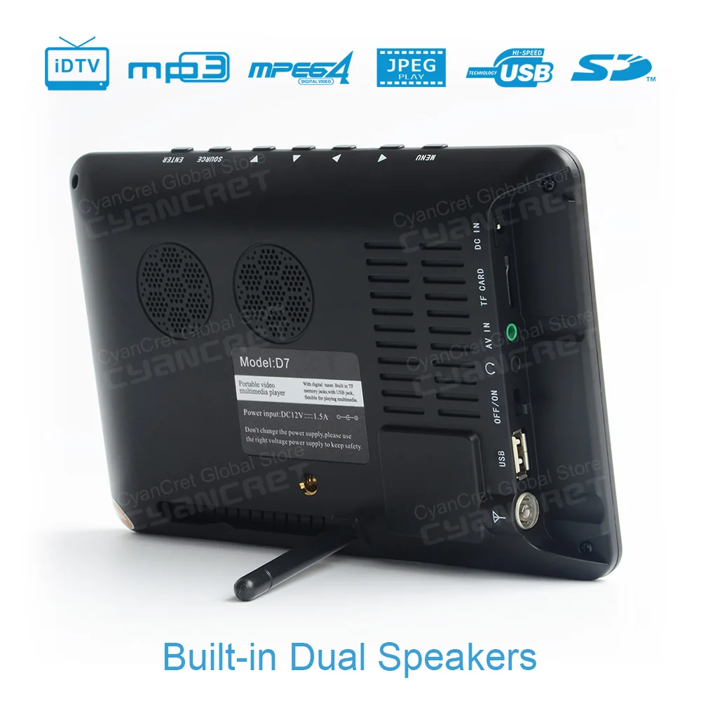 LEADSTAR D7 TV Portable DVB-T2 tdt DTT 7 pouces numérique analogique mini petite voiture TV Télévision prise en charge USB TF MP4 H.265 AC3