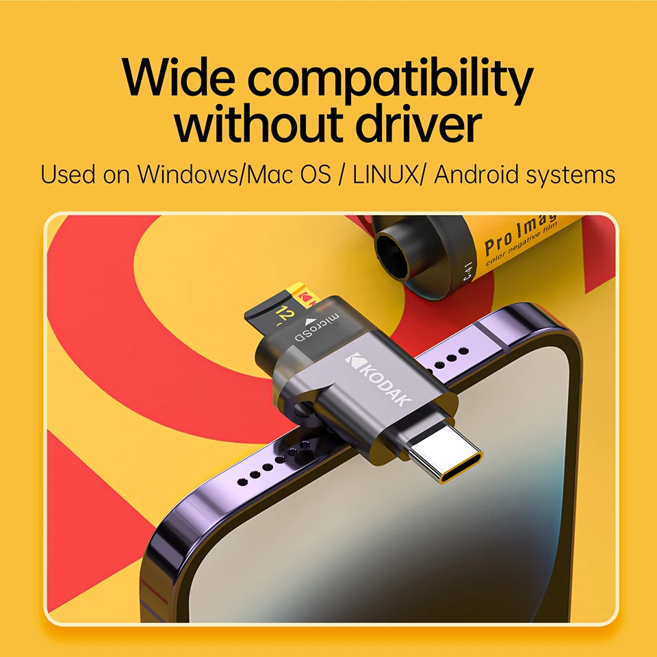 Lecteur de carte Micro SD Kodak type-c, adaptateur de Transmission à grande vitesse pour carte mémoire TF
