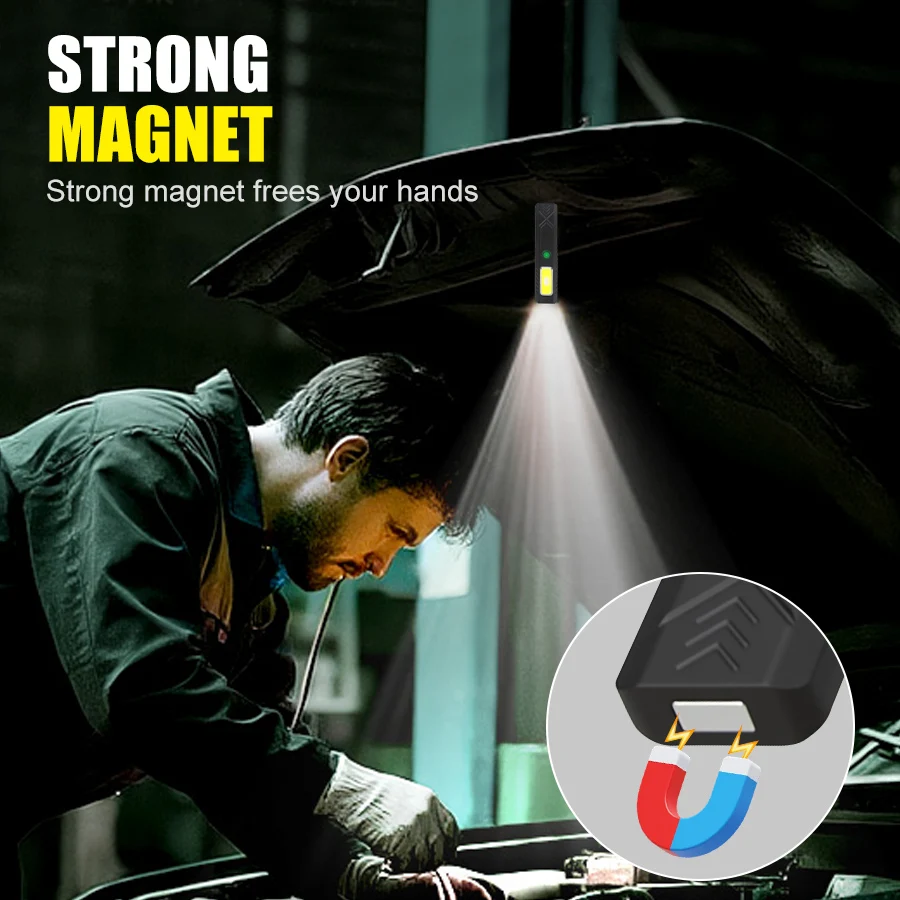 2.Fonction magnétique puissante intégrée, se fixe fermement aux surfaces métalliques, libérant vos mains, adaptée à divers scénarios tels que la réparation, le camping et le travail de nuit.