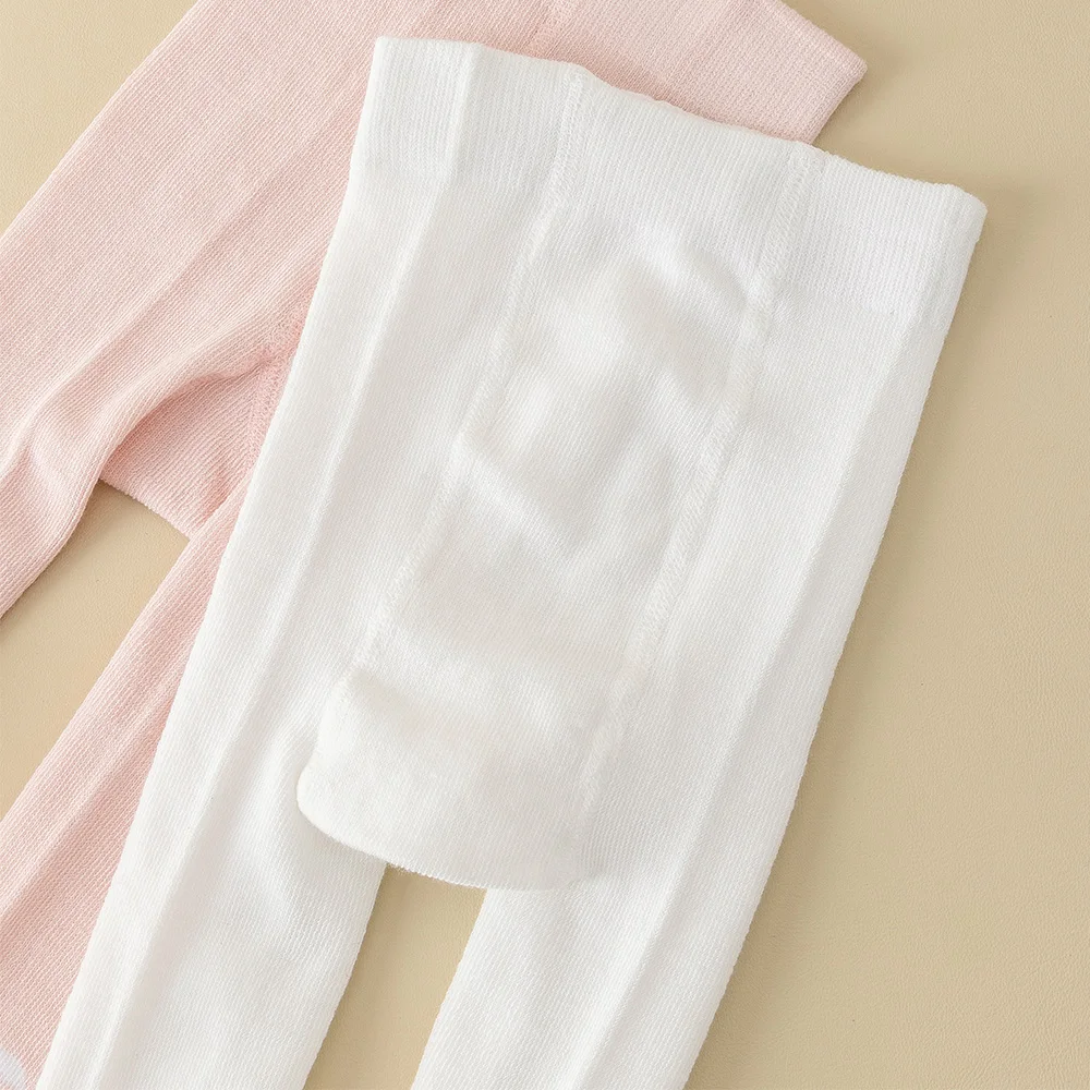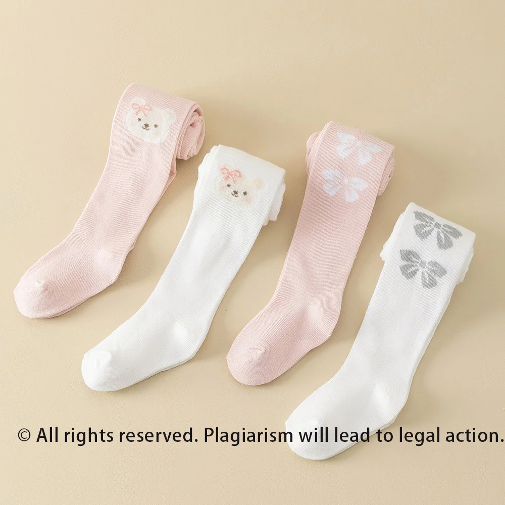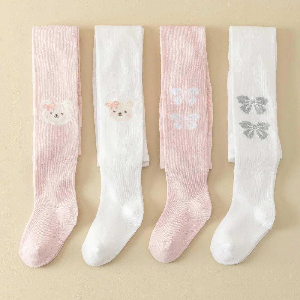 Leggings collants de couleur unie pour bébés filles, 2 pièces, mélange extensible ours et nœud mignon, parfait pour toutes les saisons, fond, usage quotidien