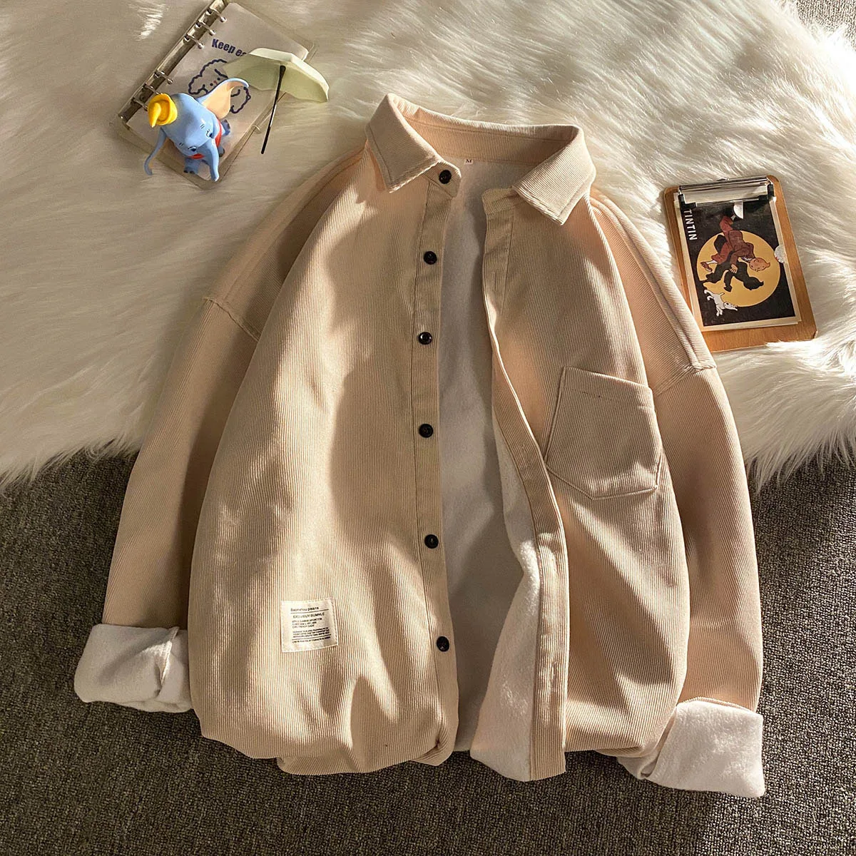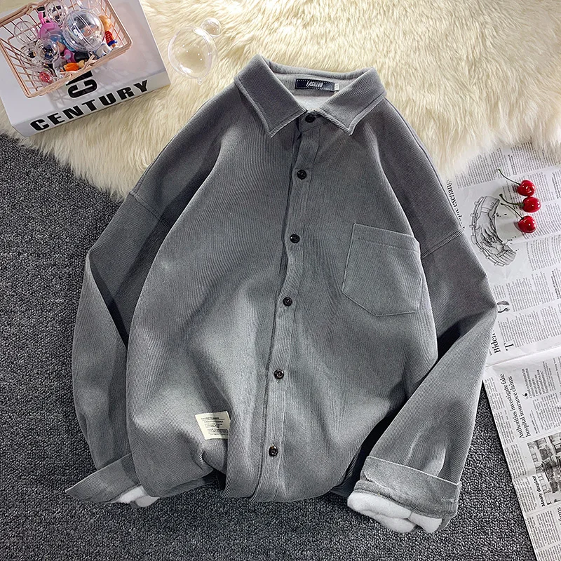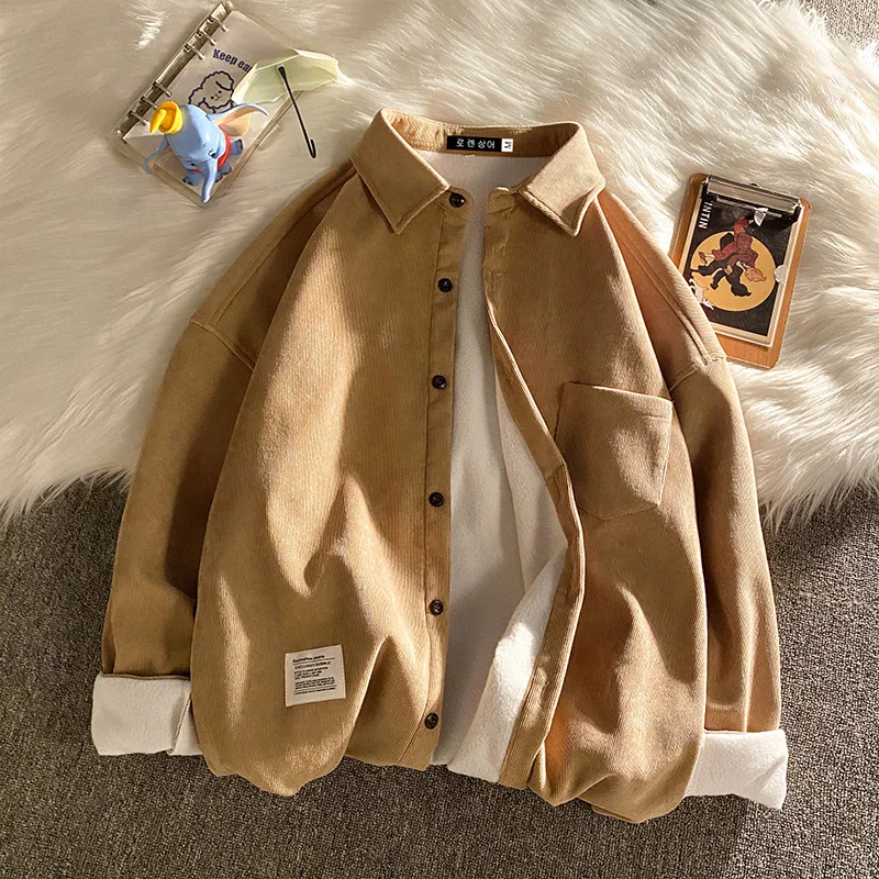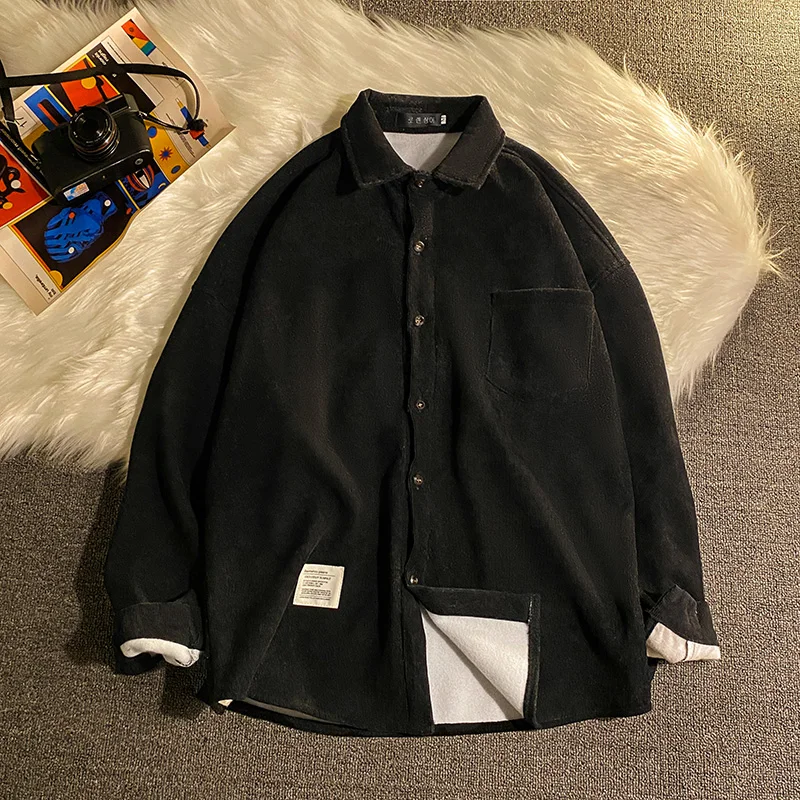 Légible automne hiver épaissir velours côtelé polaire chemises hommes décontracté ample chaud à manches longues chemise mâle