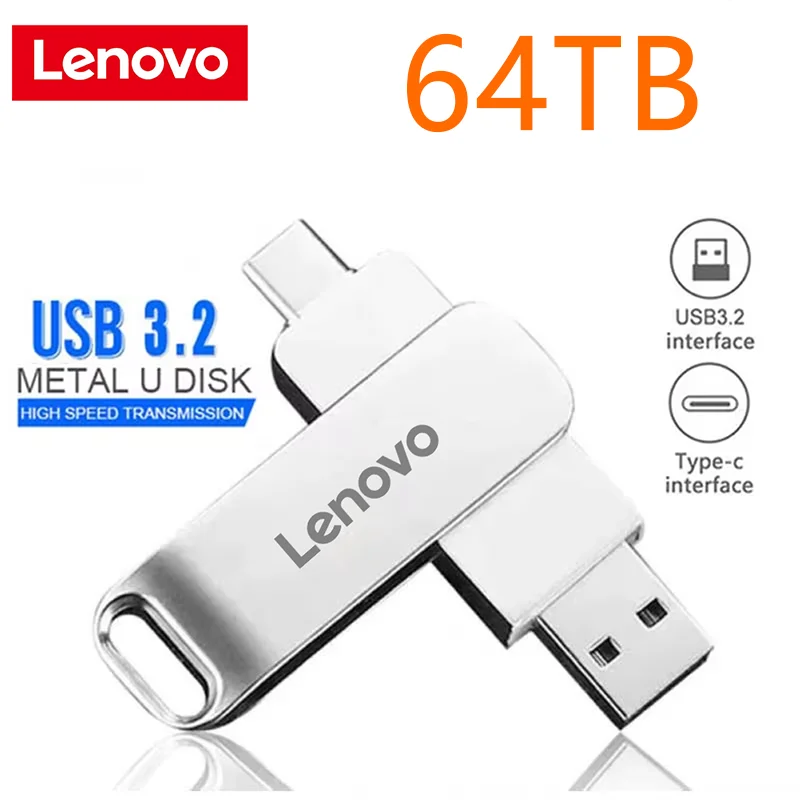 Lenovo 64TB USB 3.1 clés Flash transfert haute vitesse métal Pendrive carte mémoire Pendrive Flash disque mémoire étanche bâton nouveau