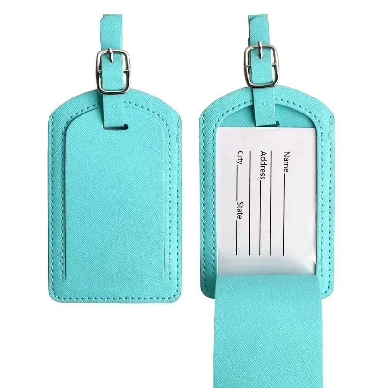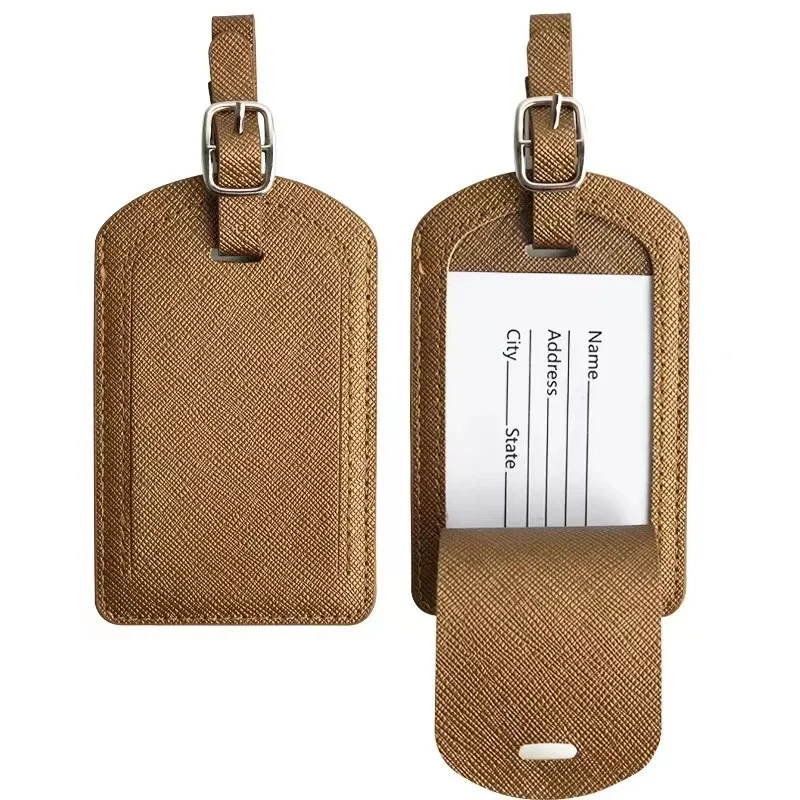 tiquette de bagage en cuir PU Saffiao avec lettres personnalisées, vente en gros, accessoires de voyage initiaux personnalisés pour femmes et hommes, étiquette de carte de nom de valise