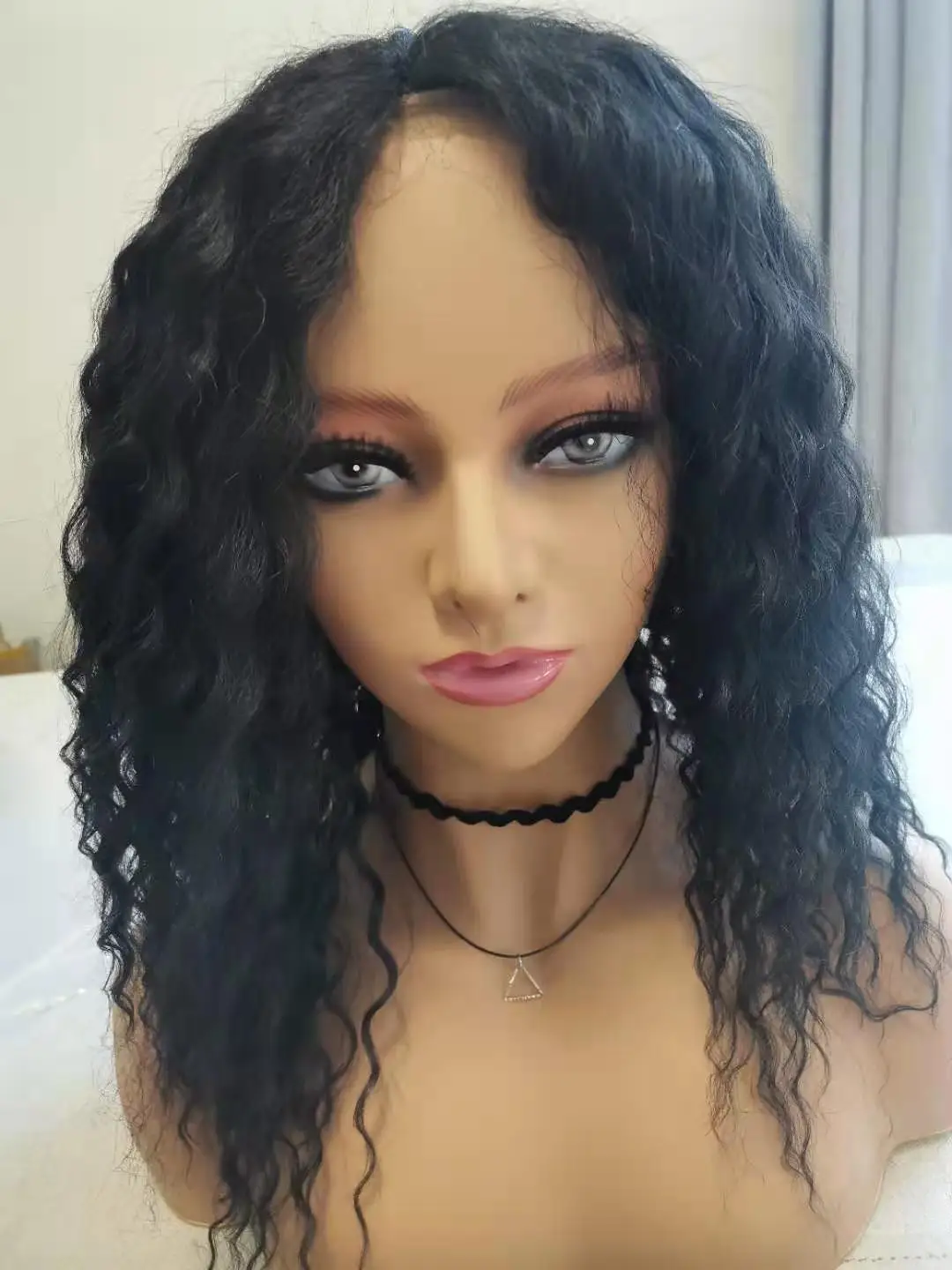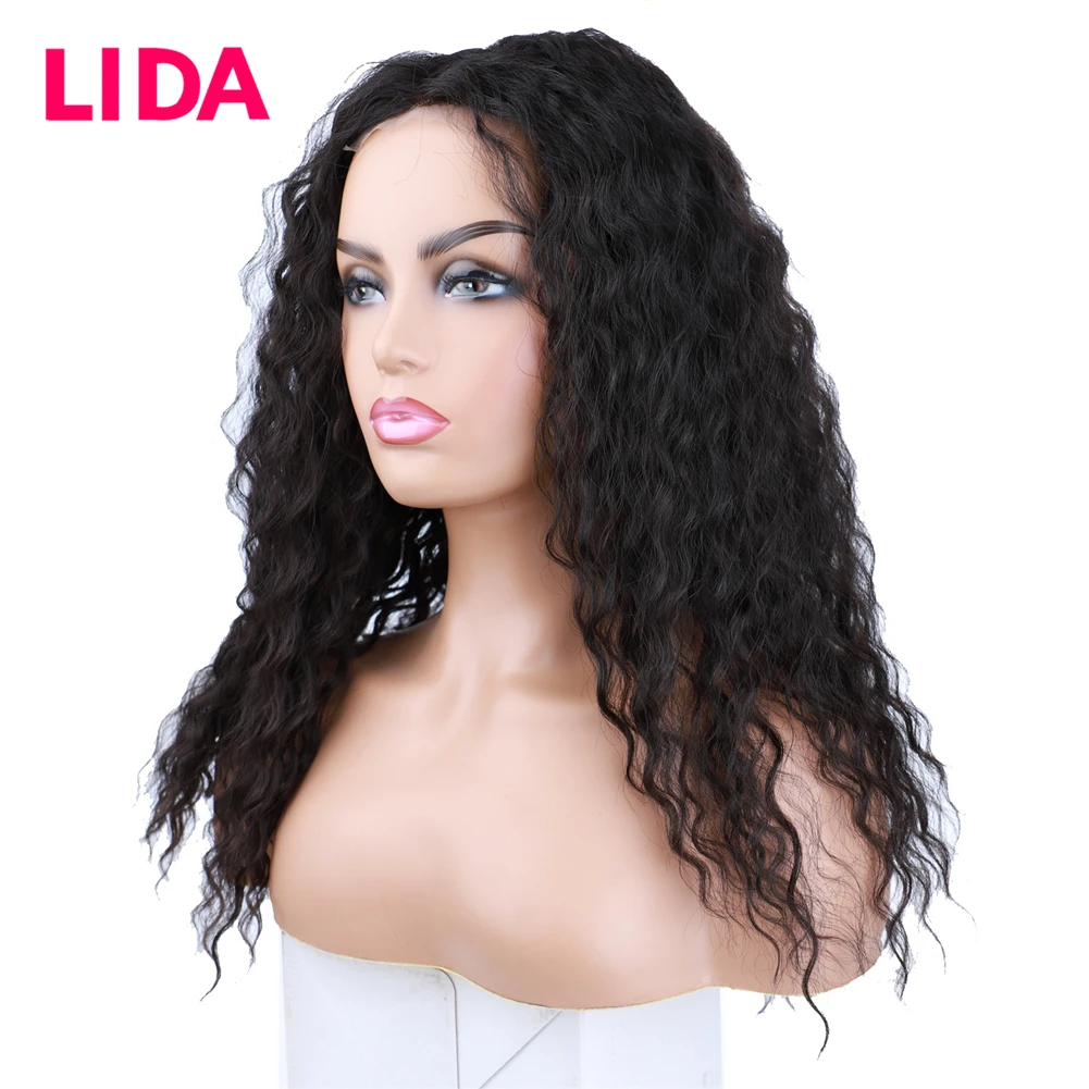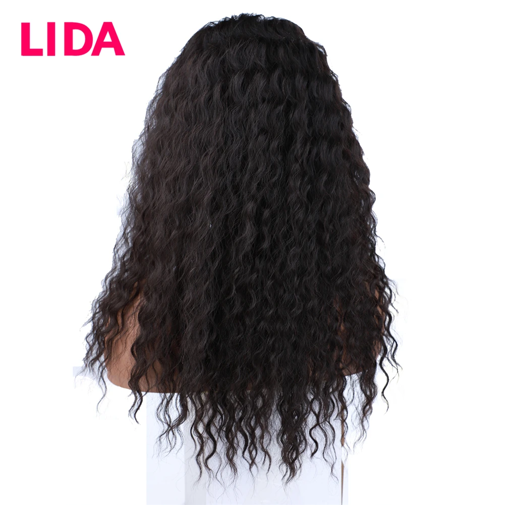 Lida – Perruque à Dentelle Frontale Non Remy Naturelle pour Femme, Cheveux Humains Mélangés de Qualité Supérieure, Boucles Naturelles de 18 Pouces Faites Machine, Chinoise