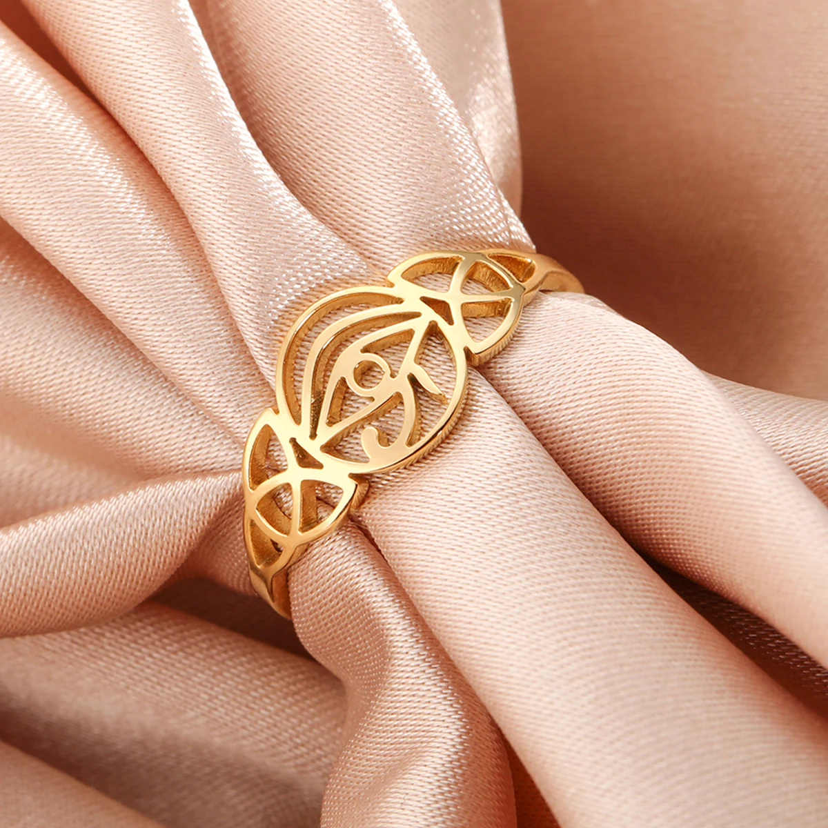 . Avec ses lignes courbes autour d'un iris solide, ce symbole mystique apporte protection, pouvoir royal et même bonne santé. On dit que l'oeil était un symbole pour la déesse Ouadjet ou le Tout. Les dossiers indiquent que Wadjet était censé avoir augmenté de l'image d'un cobra se levant. Au fil des ans, cette déesse a été associée à d'autres telles que Bast, Mut et Hathor. Des découvertes archéologiques révèlent même que le symbole a été utilisé dans les momies et les amulettes funéraires, pour éloigner le mal et protéger les rois même dans la mort. On croit également que le symbole Rx utilisé dans la profession médicale a ses racines basées sur l'oeil d'Horus.