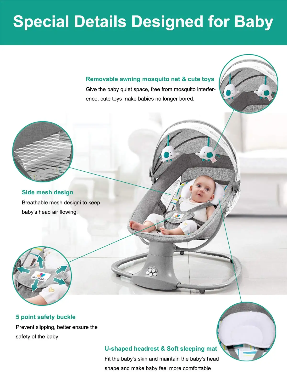 lit bébé Berceau berceaux bébé hamac chaise à bascule pour bébé Berceau pour nouveau-nés Équipement de soins pour bébé Chaise haute pour bébé, Baby Rocker Couffin à bascule automatique, Berteau pour bébé 3 en 1 avec musique