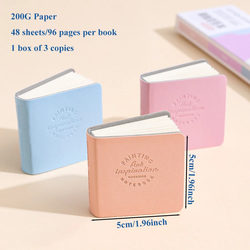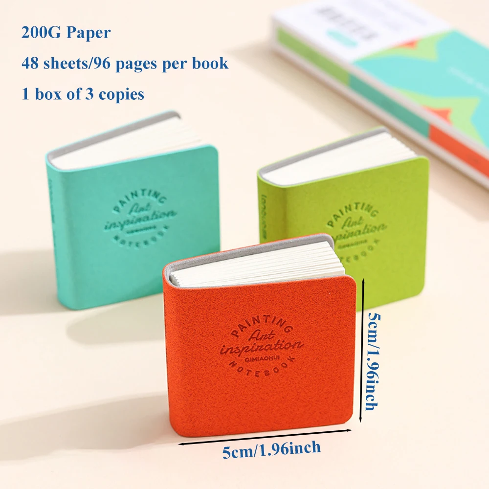 Livre de dessin de poche 50x50mm, 3 pièces, papier épais, couleur d'eau, Mini carnet de croquis, 200g, 48 feuilles, marqueur, peinture, papier, fournitures d'art