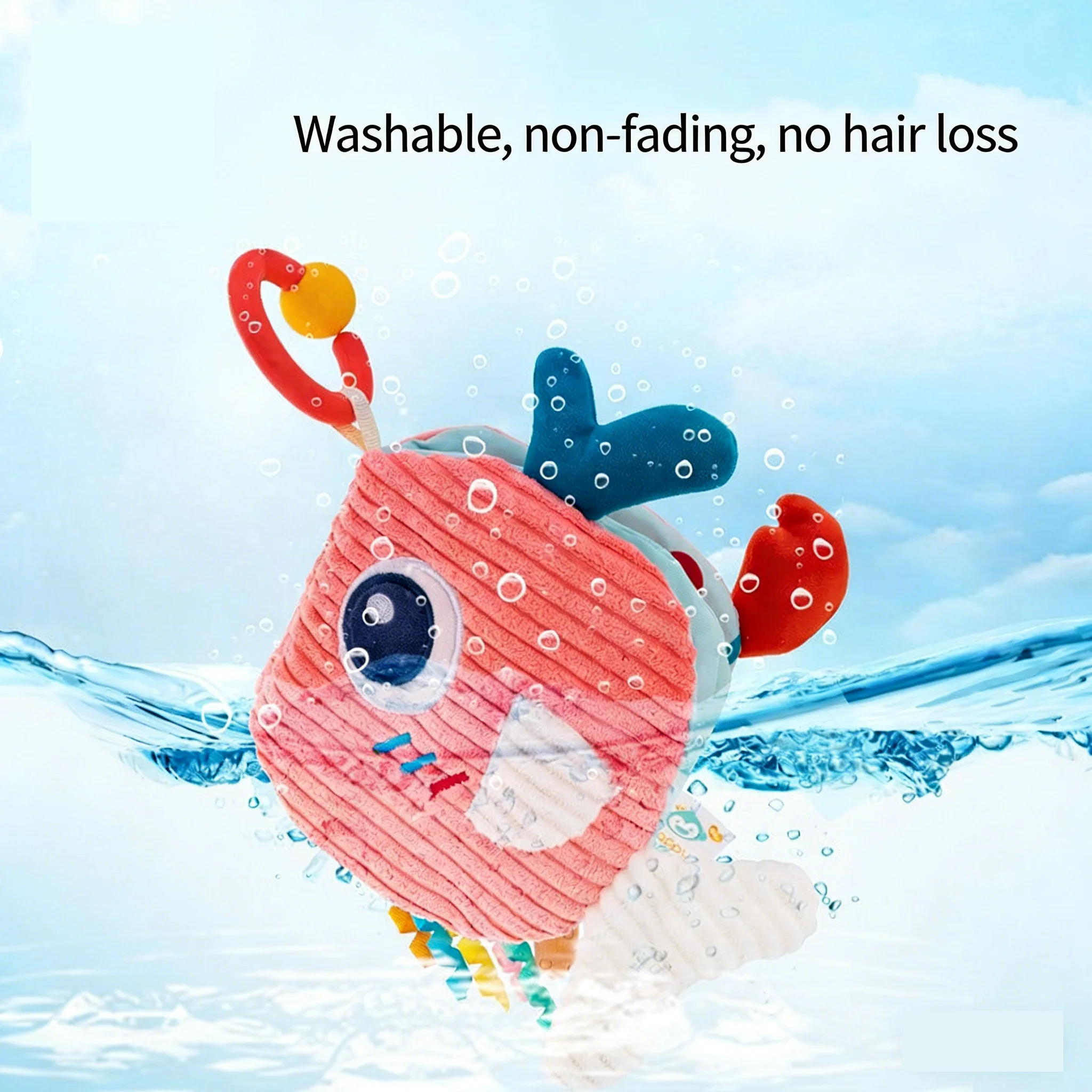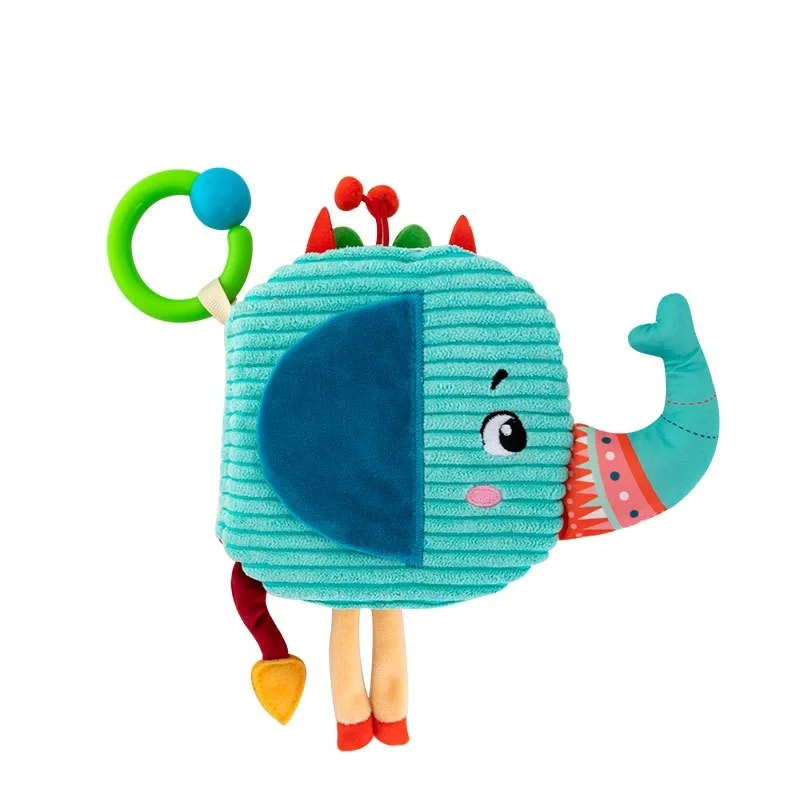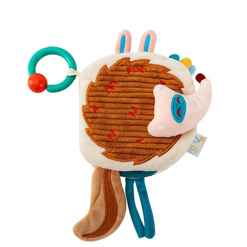 Livre en tissu doux en peluche pour bébé, jouet sensoriel avec papier froissé et hochet à plumes, jouet éducatif Montessori pour l'éveil précoce