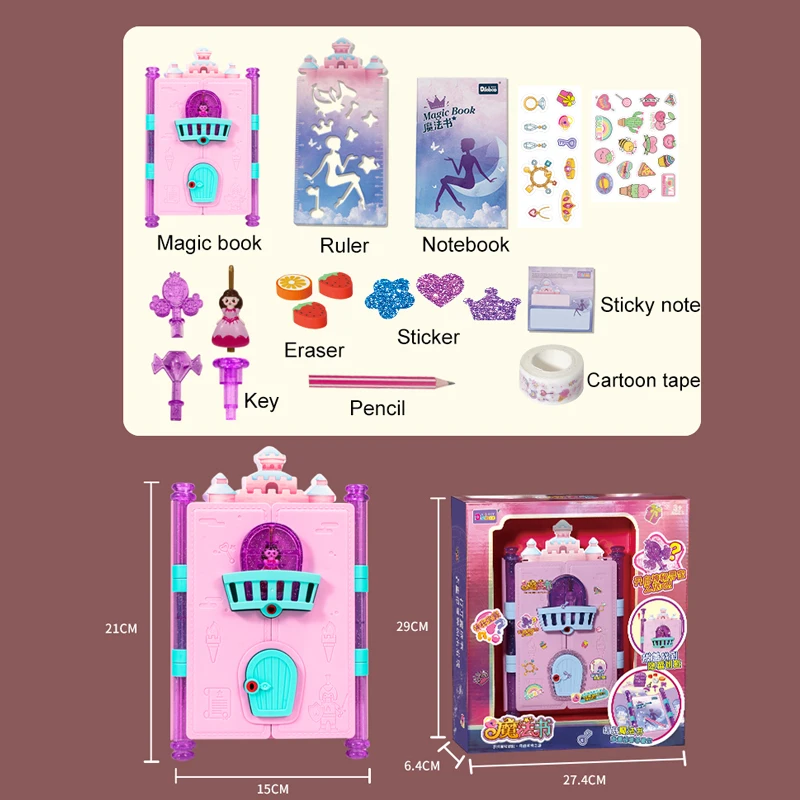 Livre magique princesse pour filles, jouet pour journal intime avec clés de verrouillage, taille-crayon, gomme autocollante, fournitures éducatives, jouet cadeau pour enfant fille