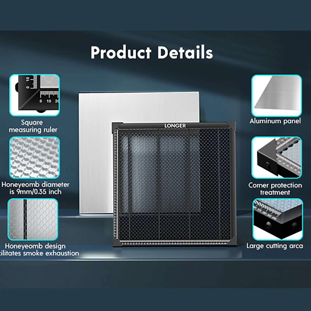 🔝 Protection de sécurité : lors de l'opération de découpe laser, une plaque en nid d'abeille plus longue est utilisée pour empêcher les reflets laser d'endommager la tête laser pendant le processus de découpe et prolonger la durée de vie du laser.L'ensemble d'établi en nid d'abeille est équipé d'un panneau en aluminium, qui peut protéger votre bureau des dommages causés par le laser.