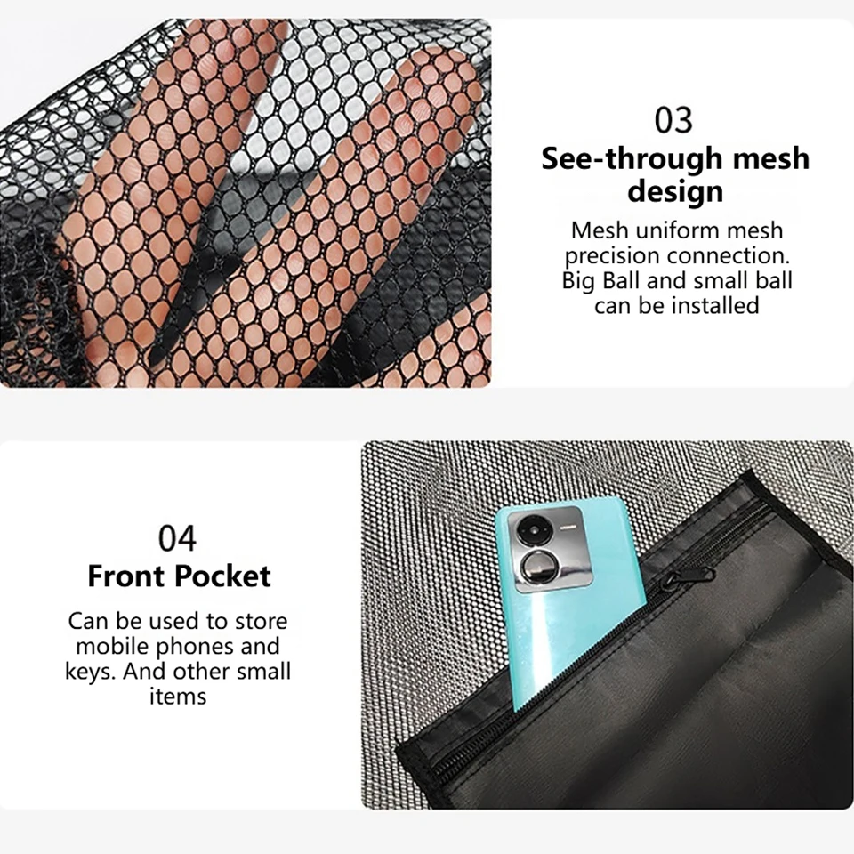 Loogdeel – sac de ballon de Football et de basket-ball, pochette de rangement à Double épaule, sac de poche pour filet d'épaule, sac d'équipement de sport d'entranement Caractéristiques : Stockage de grande capacité : peut contenir plusieurs ballons de basket, ballons de football, volley-ball, etc., adaptés à l'entranement en équipe, aux cours d'éducation physique, etc. Transport portable : la conception avec cordon de serrage permet une ouverture et une fermeture rapides, et la bandoulière peut être utilisée pour le transport simple/double épaule, libérant ainsi les mains. Respirant et à séchage rapide : le matériau du sac en filet a une bonne ventilation, empêchant les balles de devenir humides, moisissées et malodorantes. Spécifications : Marque : Loogdeel Nom : sac de football. Taille: Long 96 cm (37,8 pouces), large 76 cm (29,92 pouces) Matériel: Toile Couleur : noir Emballage inclus : 1 pièces x sac de football (Photo à titre d'affichage uniquement, sac sans balle.)