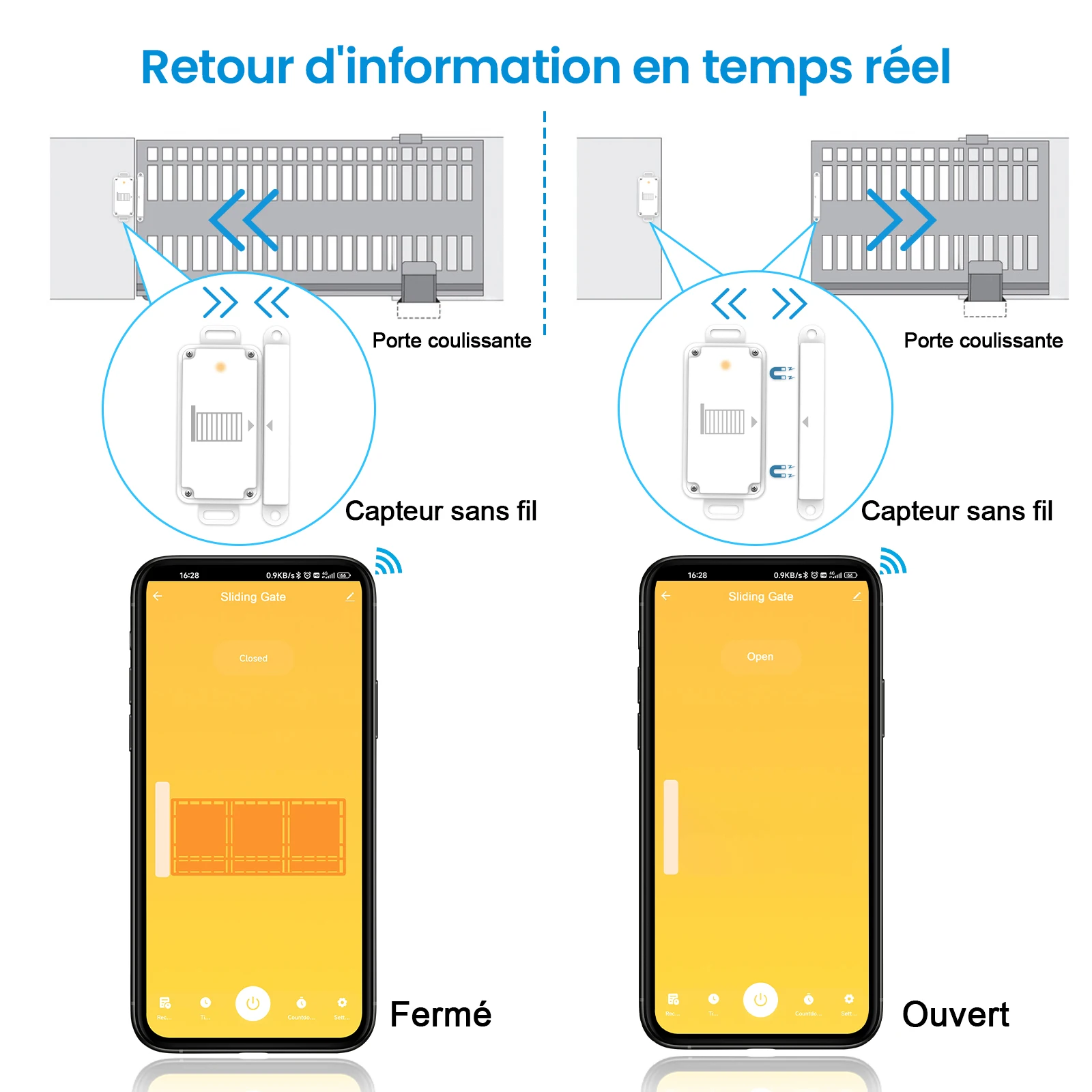 - Commentaires en temps réel : l'interface de l'application fournit des commentaires en temps réel sur l'état de la porte coulissante pour confirmer la sécurité.