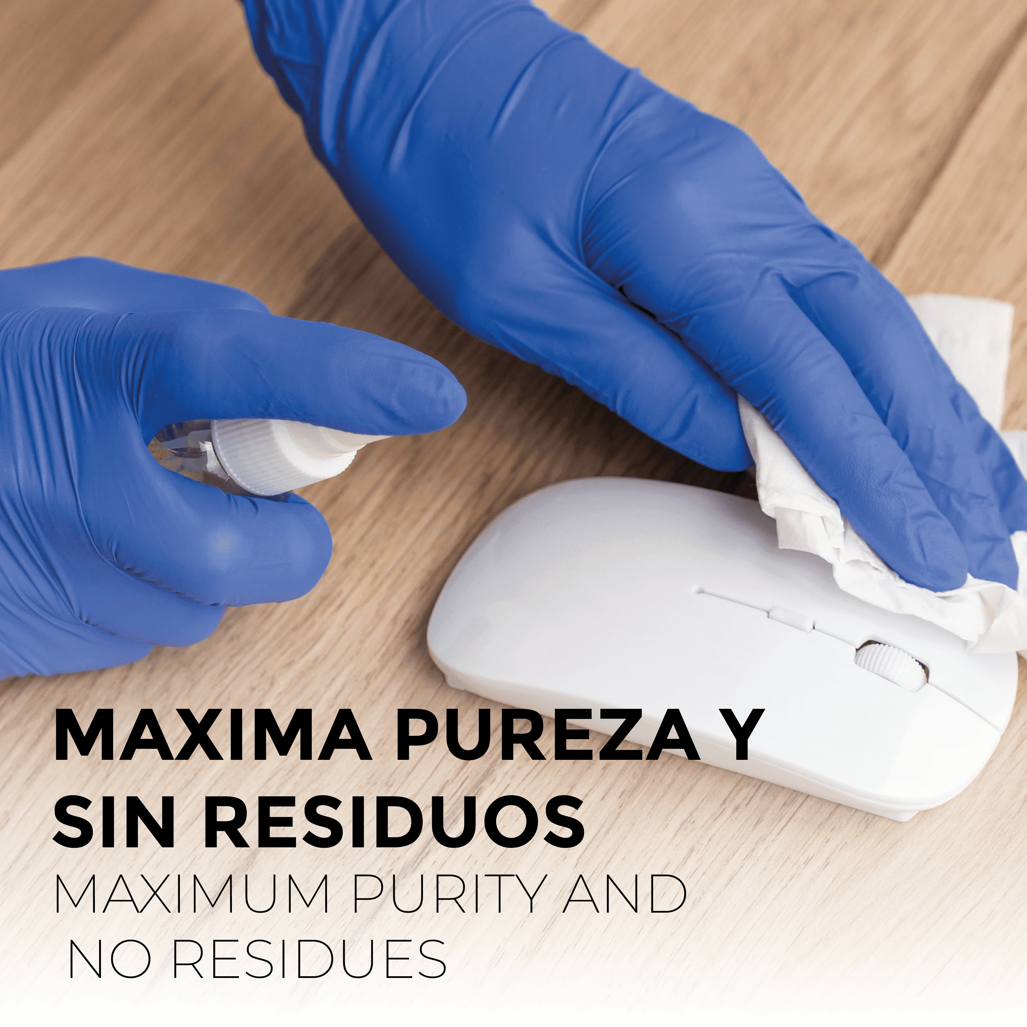 % : Sa grande pureté permet d'éliminer tout type de virus et de bactéries sans laisser de trace.De cette façon, vous pourrez nettoyer et désinfecter toutes sortes d'éléments
