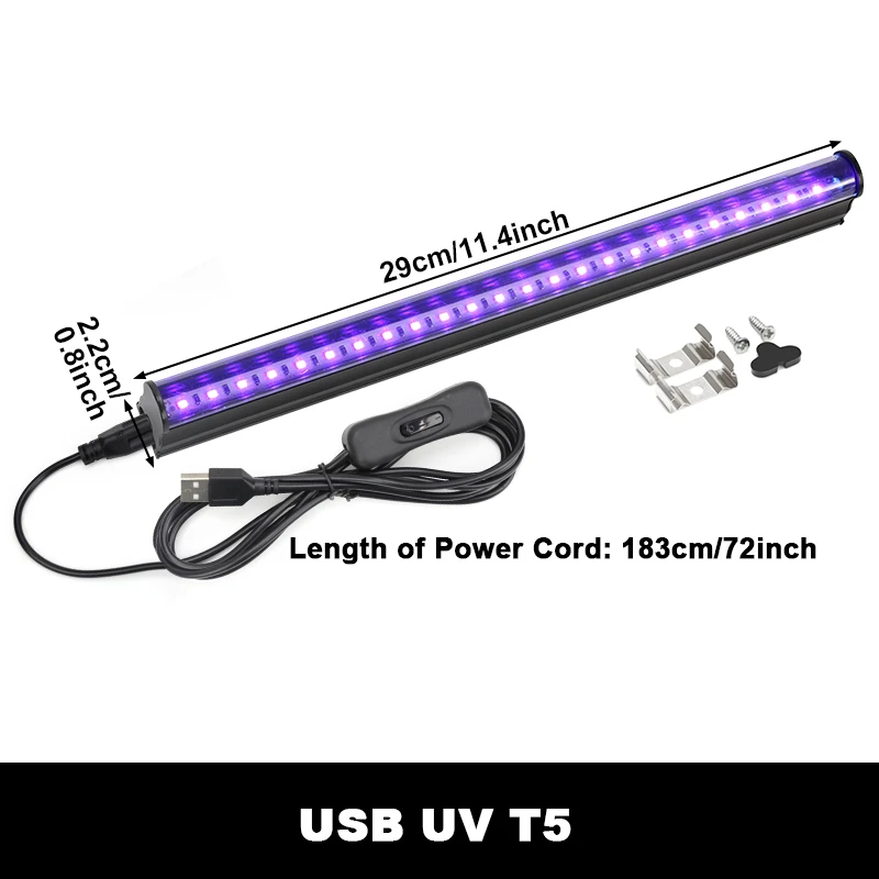 Lumière noire UV T5 T8 Tube 5V 6W, ampoule à ultraviolets 395nm, barre de lumière noire pour détecteur d'argent, décor Disco de fête d'halloween