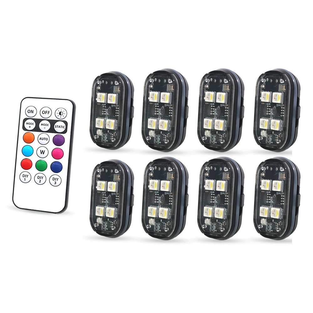 Lumières stroboscopiques LED sans fil, lumière d'ambiance de décoration de voiture, lumières Led rechargeables 8 couleurs, voyant d'avertissement Anti-Collision, 2/4 pièces